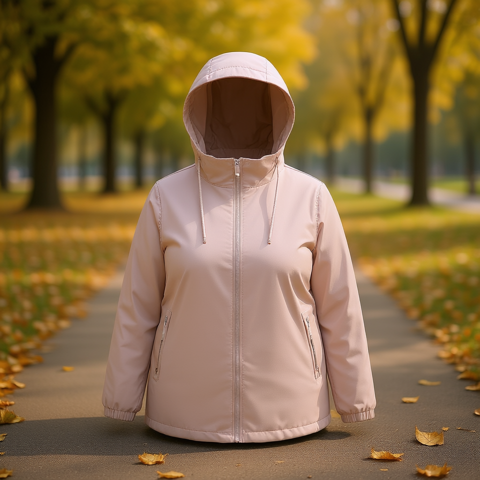 Giacca con Cappuccio in Cotone HDJ Plus Size per Donna, Cappotto Blouson Autunnale M-3XL, Leggero, Tinta Unita, Chiusura con Cerniera