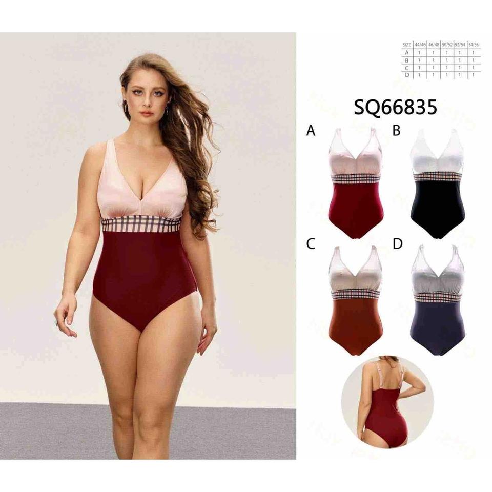 Costume da bagno intero HDJ Plus Size con scollo a V profondo, controllo pancia, vita alta, bordo a contrasto, fantasia a quadri, in Spandex Nylon da donna