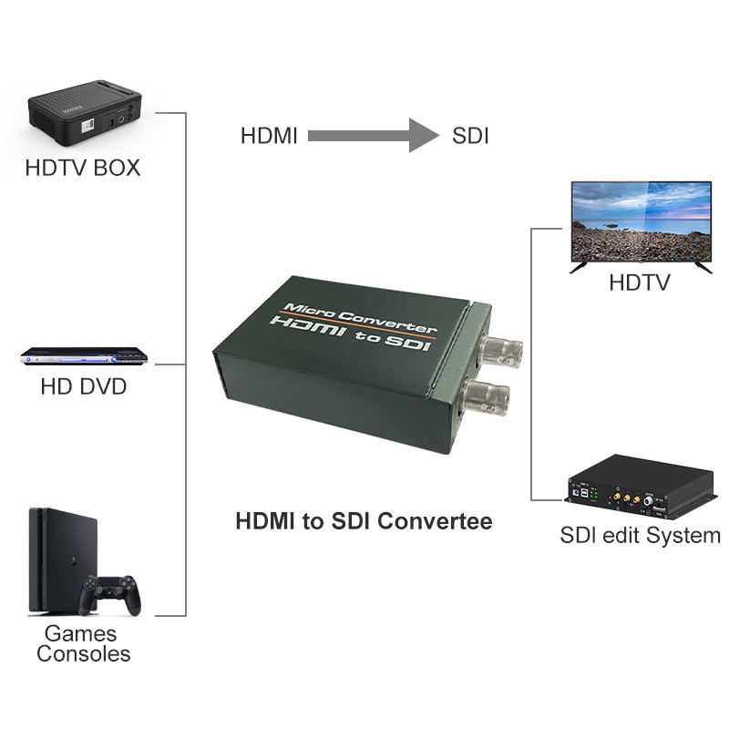 Convertitore Video HDMI a SDI Mini 3G HD SD-SDI con Adattatore di Alimentazione USB, Switcher HDMI a SDI