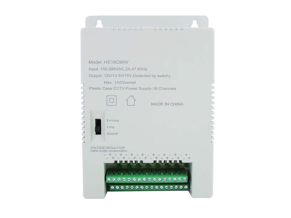 HEDY HE16C96W 12V/13.5V/15V 16 Channel 96W AC DC Adjustable Single Output Power Supply with Cable Length Sport SKD CKD