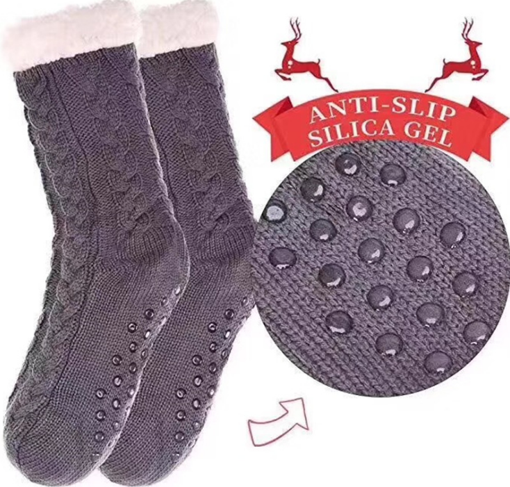 HEHE 2021 New Women Non-Slip Knee High Stockings Hand Knit Wool Fleece Lined Long Slipper Christmas Fuzzy Fluffy Socks