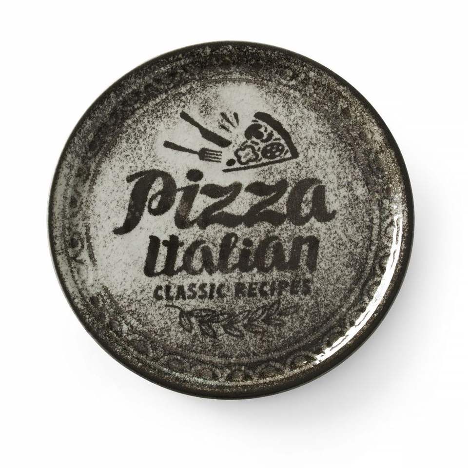 HENDI Piatto per Pizza Nero 310mm, Collezione di Ricette per Pizze Perfette, Utensili per Pizza in Ceramica Nera