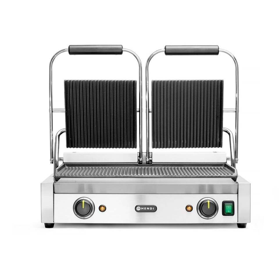 HENDI Piastra per Sandwich Commerciale Doppia Versione 230V/3600W con Superficie Superiore e Inferiore Scanalata 570x375x(H)216mm