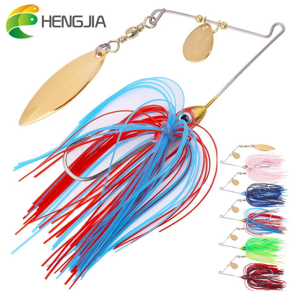 HENGJIA 11g Long Skirt Lead Head Artificial Hard Bait Chatterbait Fishing Lure with Double Blades for Bass Fishing