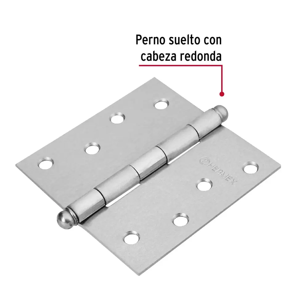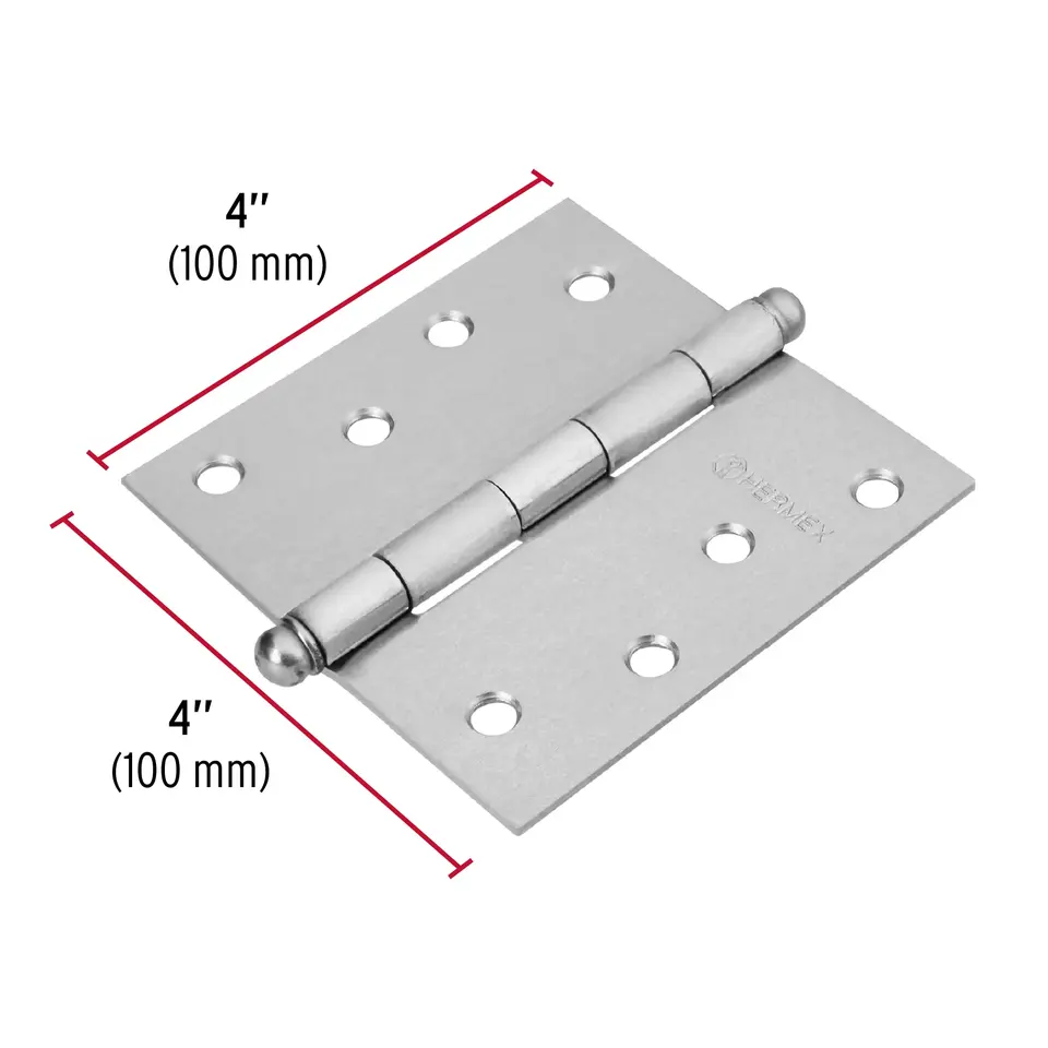 HERMEX 4' Satin Finish Metal Cabinet Door Hinge Modern Design Soft Close Round Head Box of 10 Square Steel Hinges