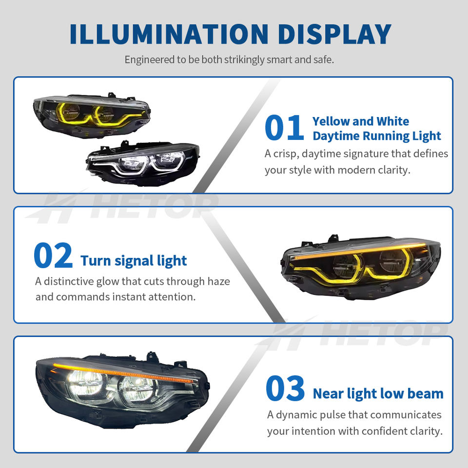 Fari HETOP F32 2013-2019 Bicolore IKON V2 con DRL Gialli e Bianchi per BMW Serie 4 F36 F80 M4 F82, Gruppo Luci Anteriori