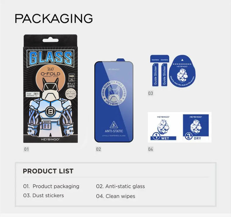HEYBINGO O-FOLD Pellicola Protettiva in Vetro Temperato 0,3mm per iPhone 11 12 13 14 15 Pro Max Protezione Schermo HD per Cellulare