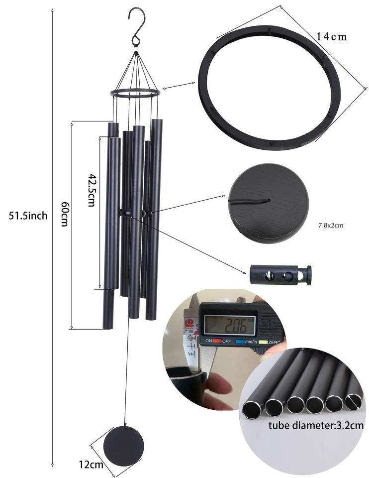 HF NEW Hot Sale Aluminium Black Memorial Wind Chime for Garden With Nice Sound
