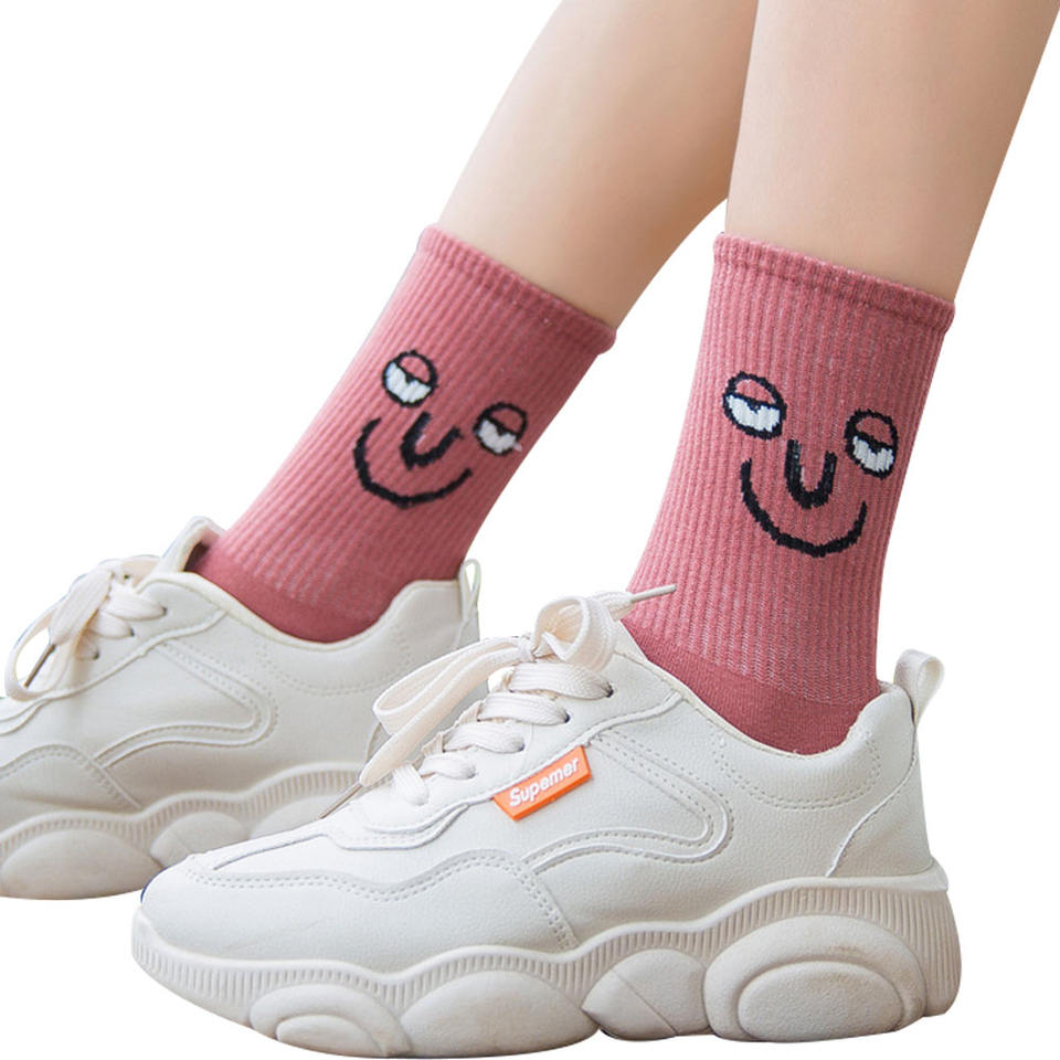 HF Women's Funny Anime Cartoon Face Emoticon Socks 100% Cotton Crew Length with Body Logo