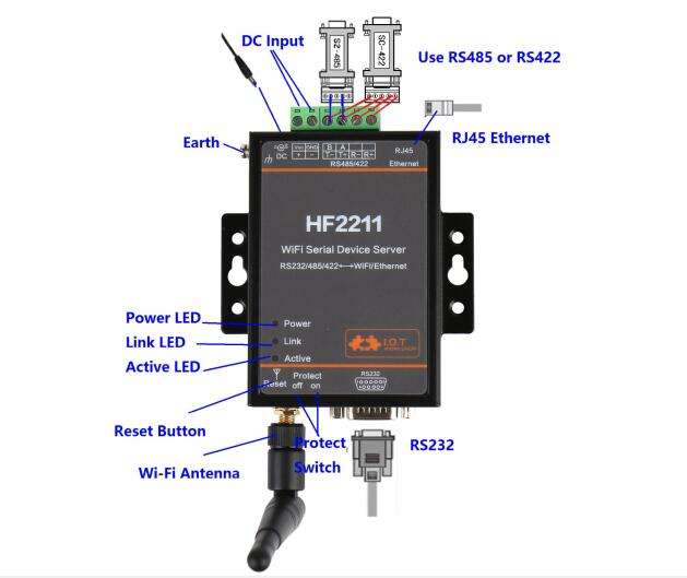 HF2211 WiFi Ethernet Mqtt Tcp Ip Serial Converter Modbus IoT Gateway Two-Way Transparent RTU DTU RS232 Communication Networking