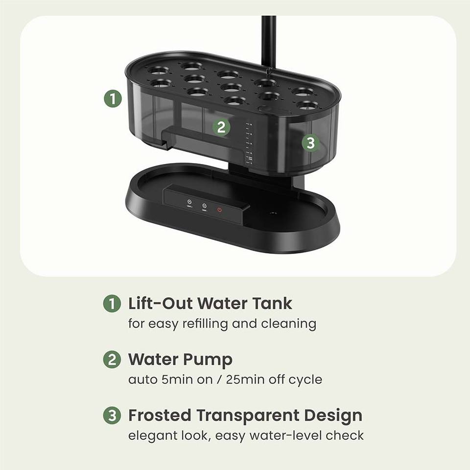 Sistema di Coltivazione Indoor HGS16-1CB con Serbatoio Estraibile, Kit Idroponico per Germinazione Piante Harvest Smart Home, 12 Vasi con Luce LED per Crescita