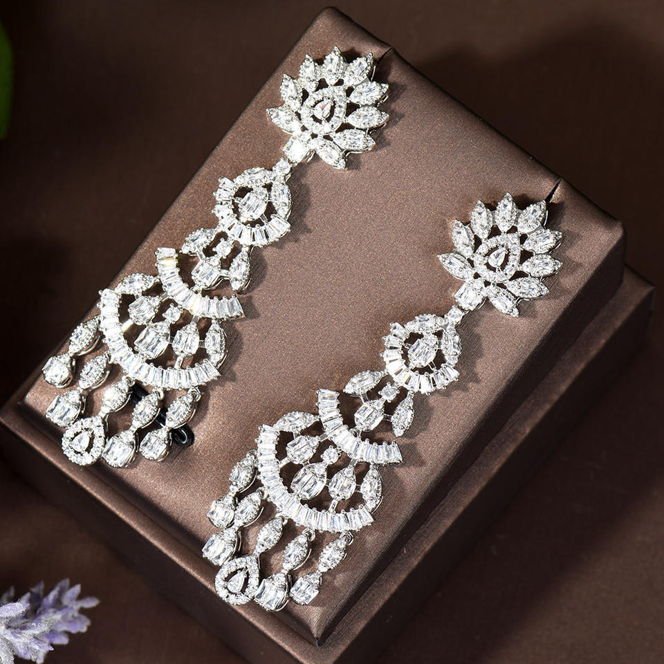 Orecchini Pendenti HIBRIDE con Design Geometrico, Zirconia Cubica, Gioielli da Sposa per Donne, Accessori Moda Dubai E-640