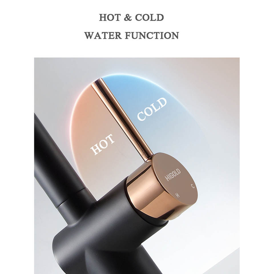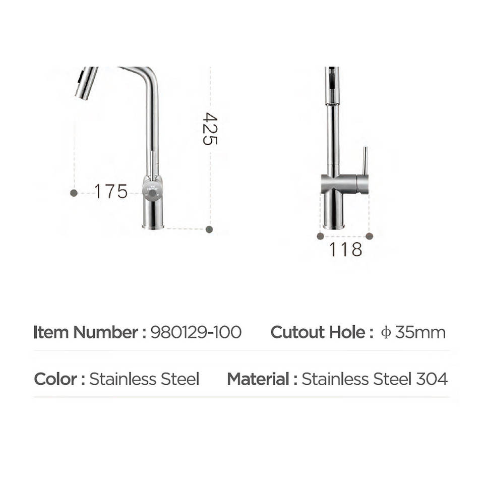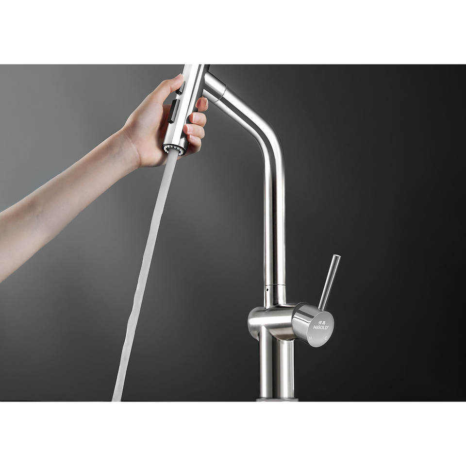 HIGOLD BN1.0 Traditional Single Handle Pull Kitchen Faucet Stainless Steel Plated Brushed Finish Rotatable Hot/Cold Water 1-