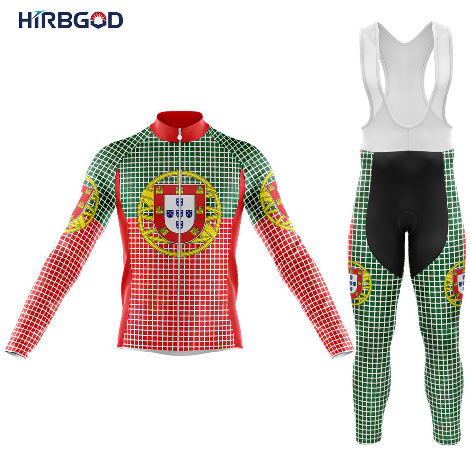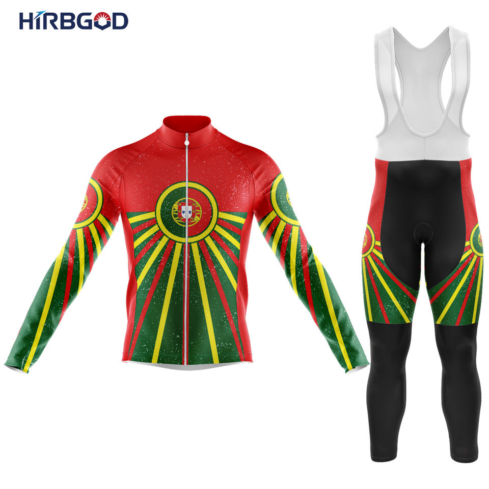 HIRBGOD Portugal Male Long Sleeve Cycling Clothing Set Winter Outdoor Biking Shirts Mens Kit Cycling Bib Trousers Suit