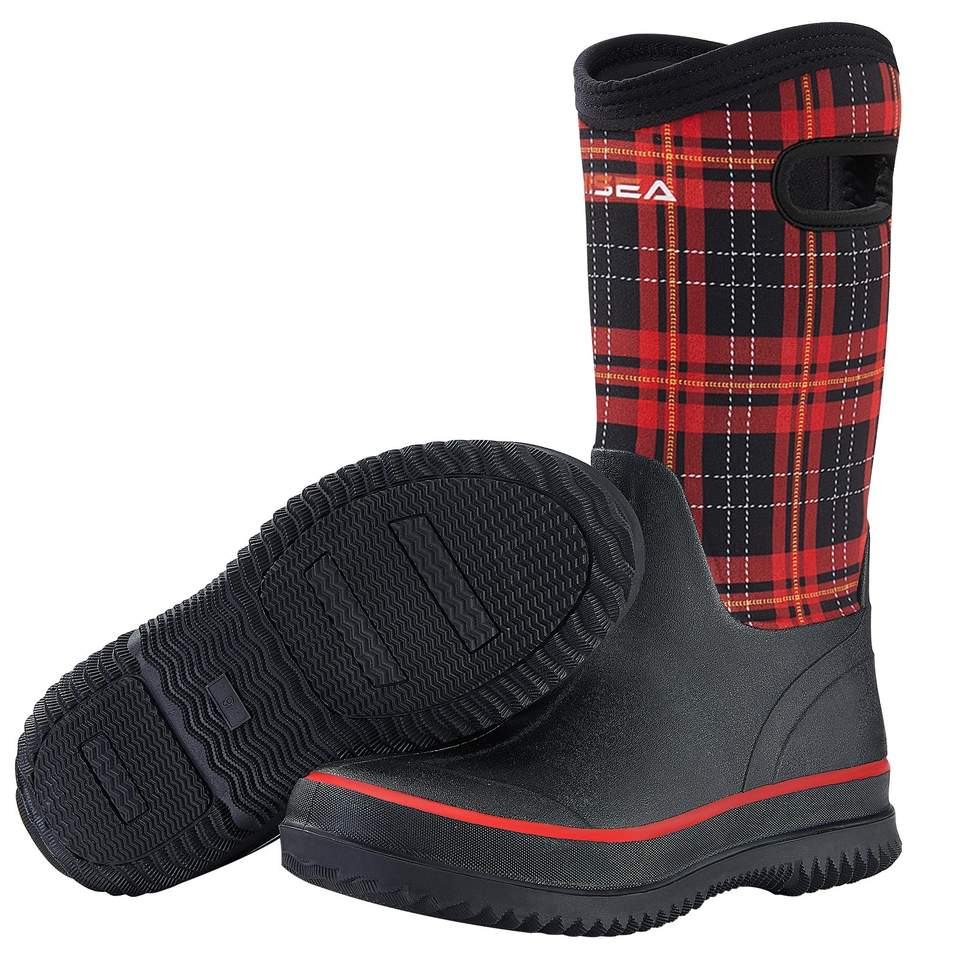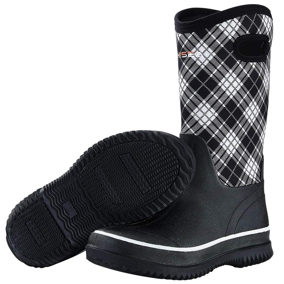 HISEA Rain Boots for Women Mid Calf Rubber Boots Waterproof Neoprene Insulated Barn Boots for Mud Working Gardening