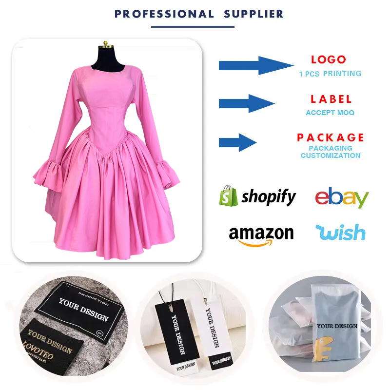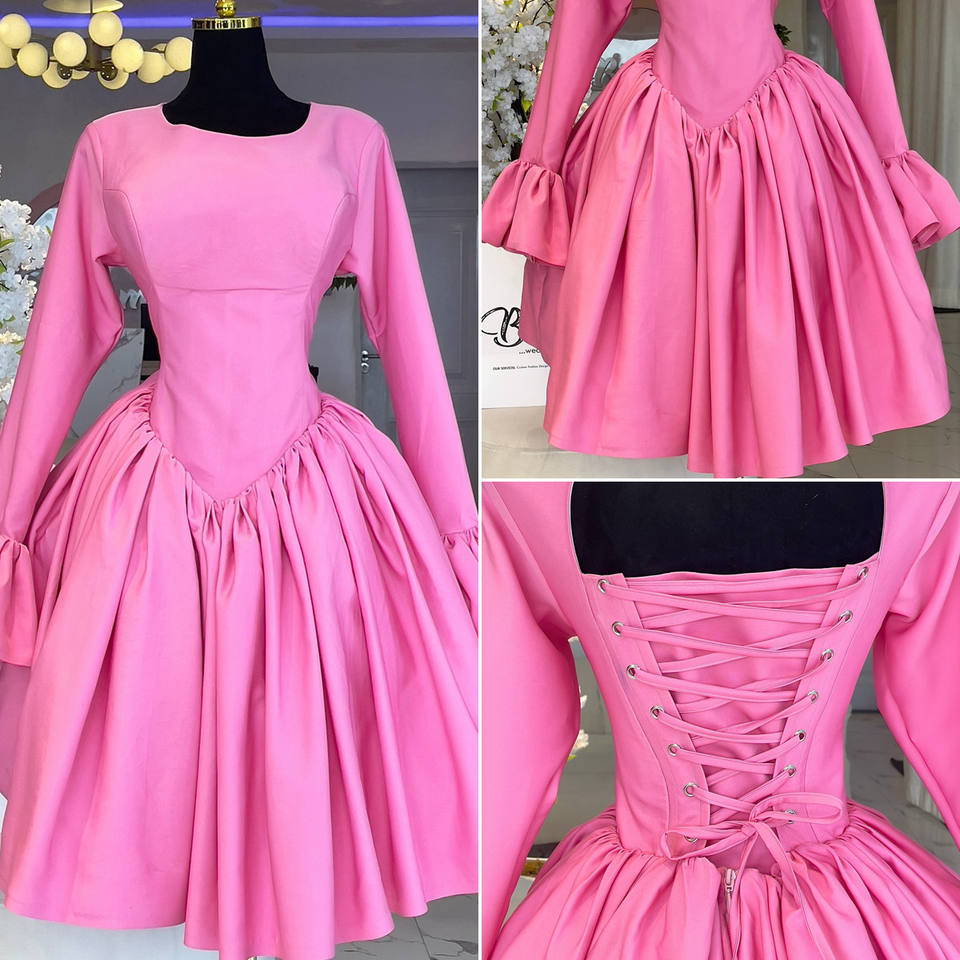 HK7922 Trendy Autumn Dresses Women Casual Elegant Round Neck Long Sleeve Back Strap A-line Cute Birthday Party Dress for Ladies
