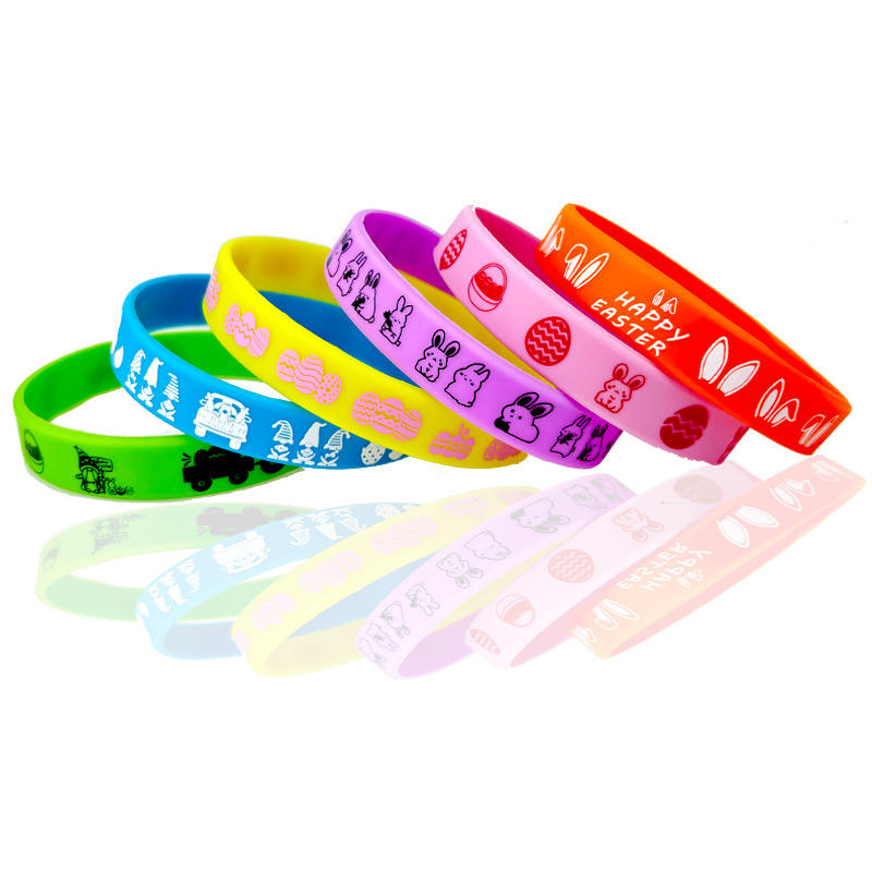 Braccialetto Personalizzato HLC per Pasqua, Bracciale a Tema Festivo con Coniglietto e Pappagallo in Silicone per Promozioni