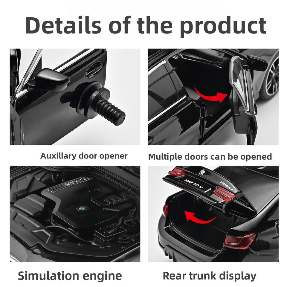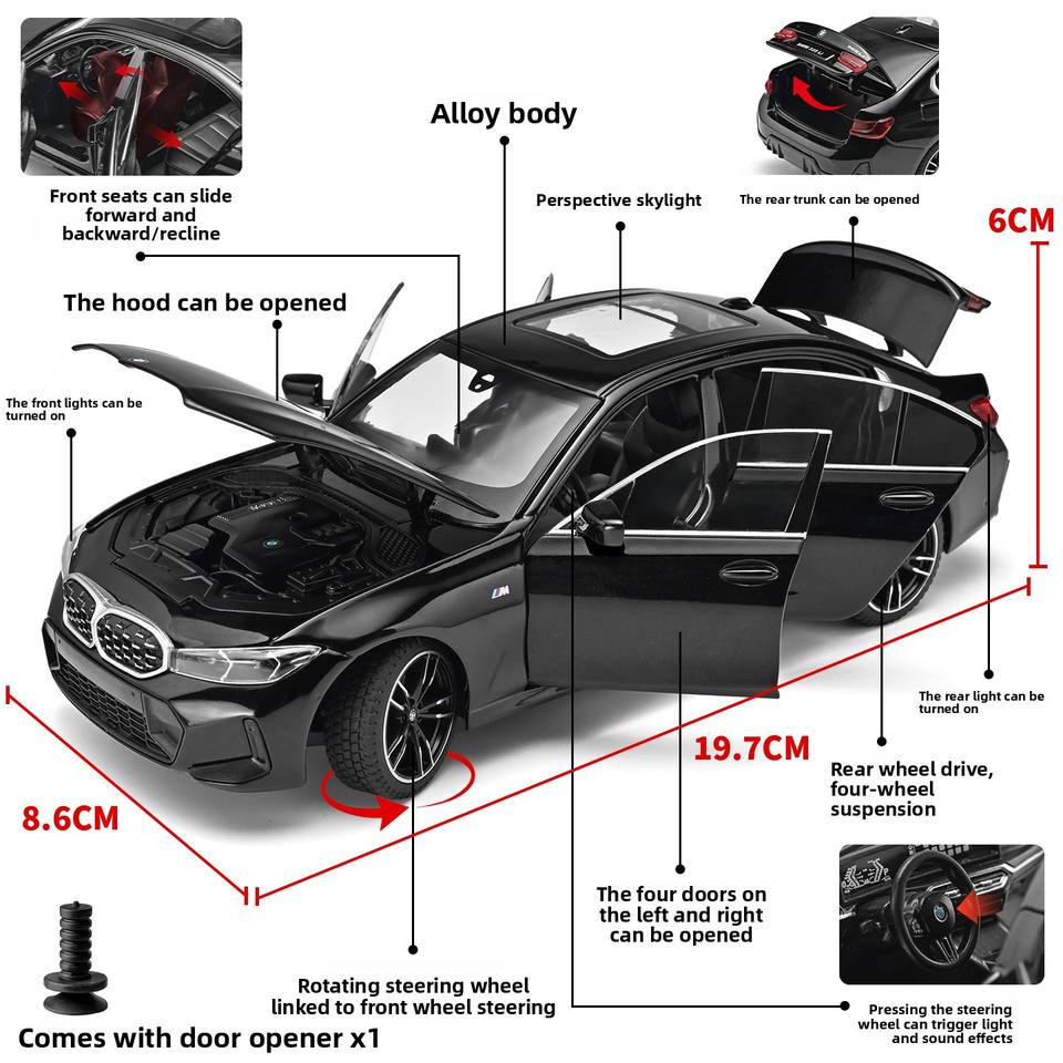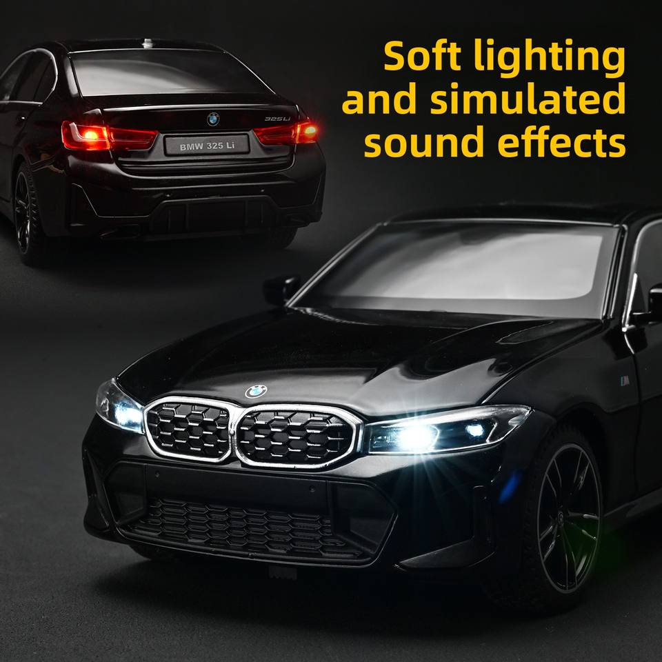 HMB Serie 3 325Li Auto Giocattolo in Lega Pressofusa per Bambini con Porte Apribili, Meccanismo Pull-Back, Effetti Luminosi e Sonori, Scala 1:24