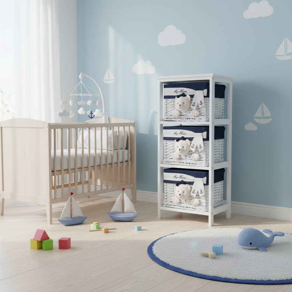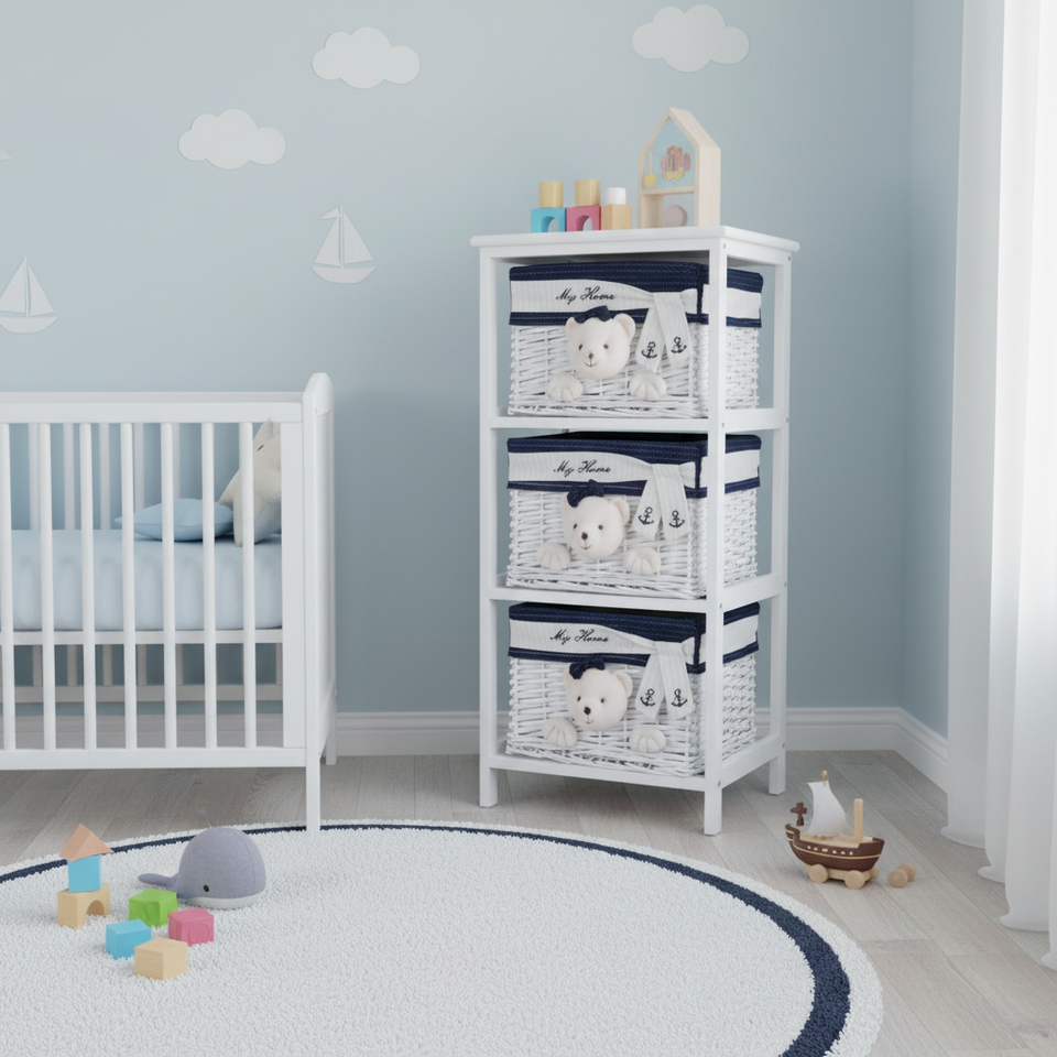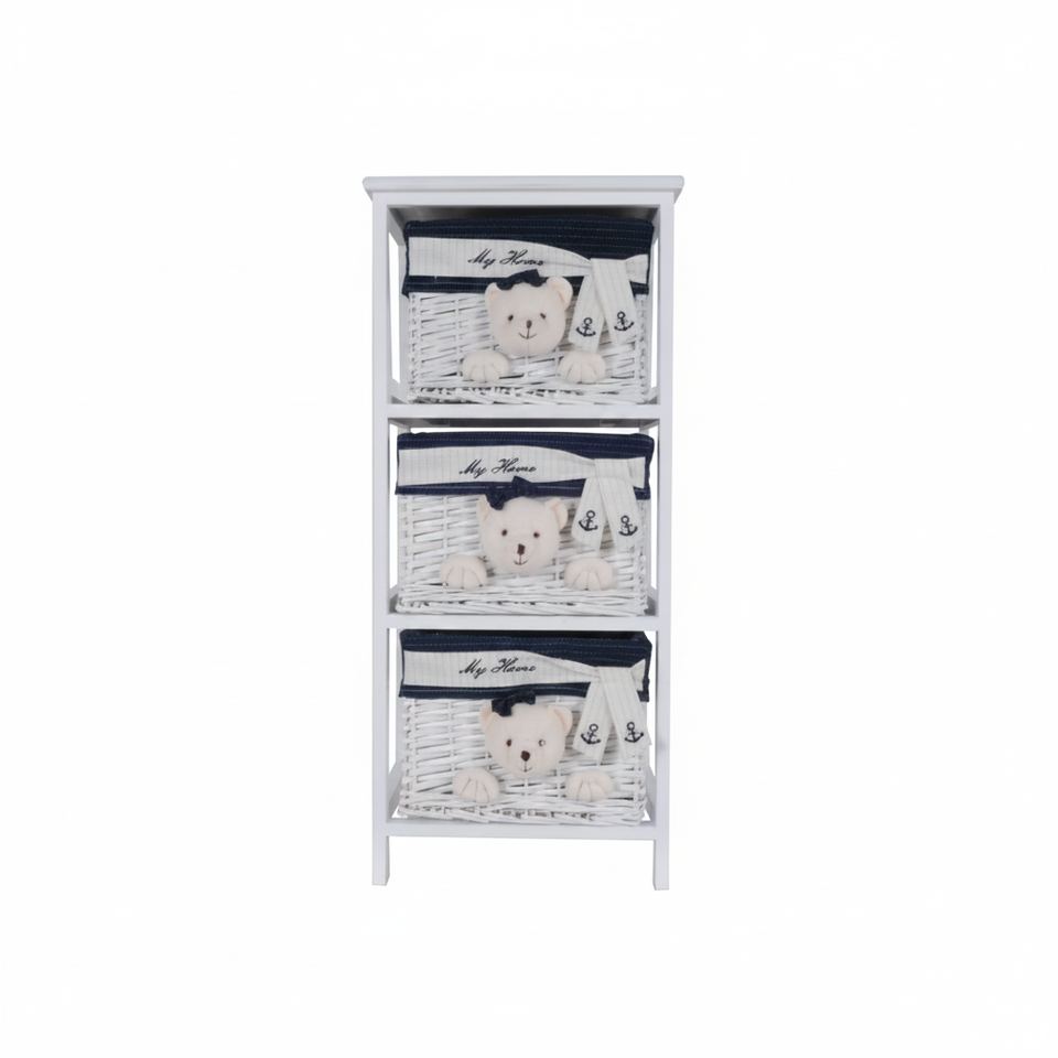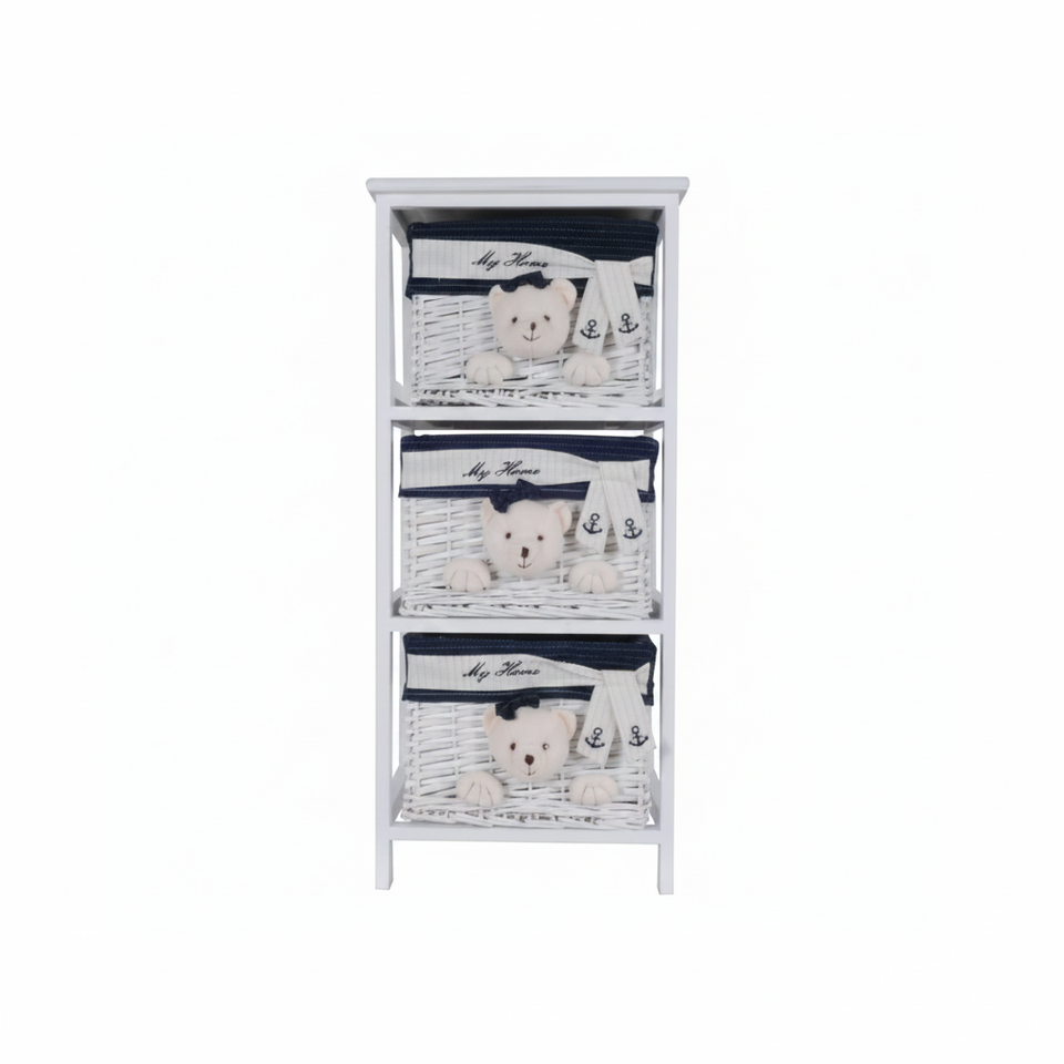 HMS 12.5" X 16" X 35.5" Portable Toy Chest & Organizer White Blue 3 Drawers Model AL1032 Made in China