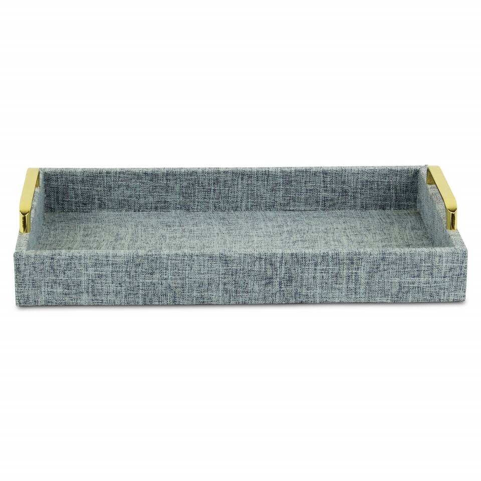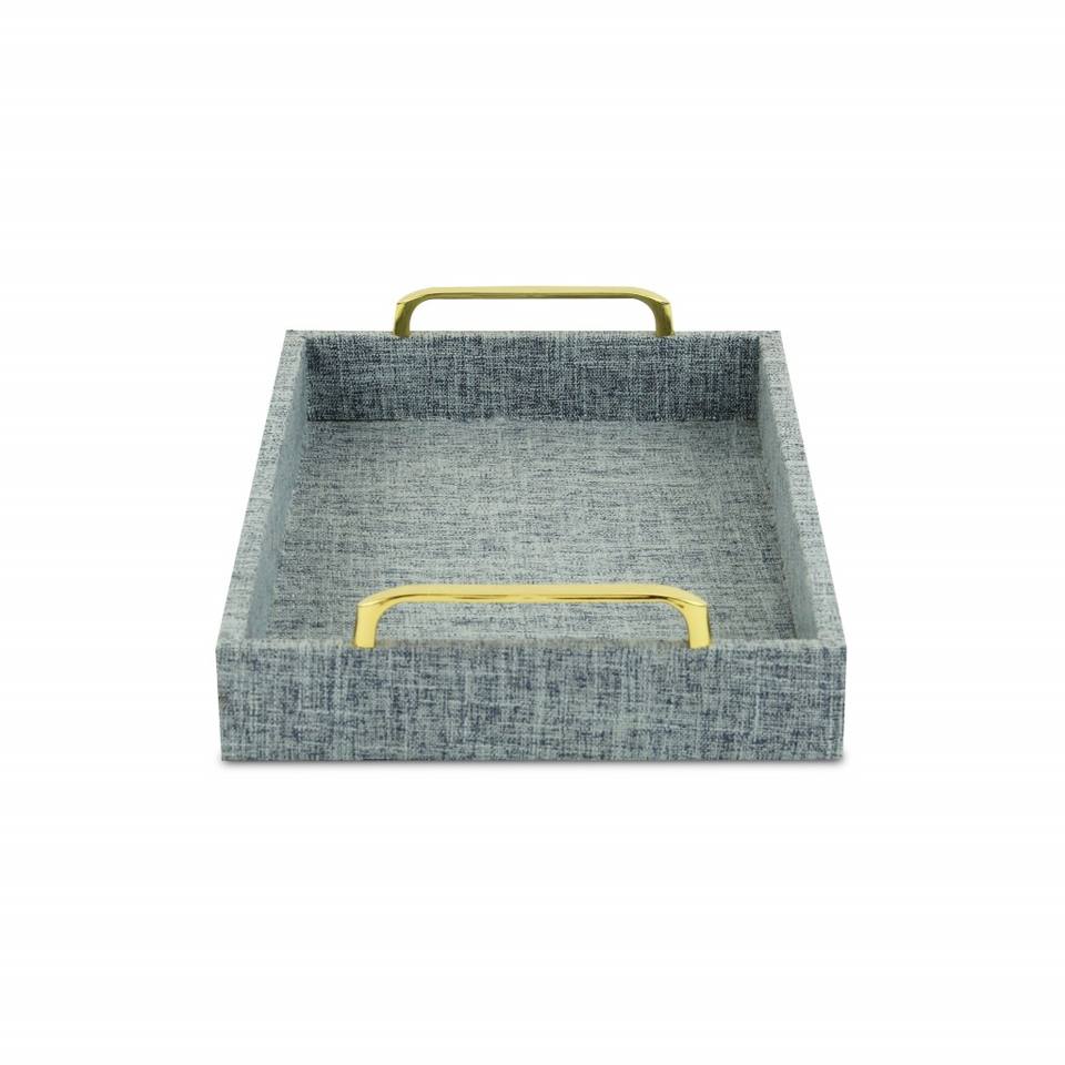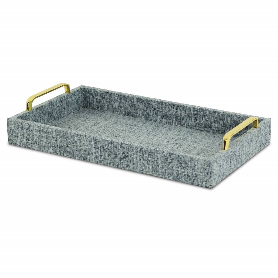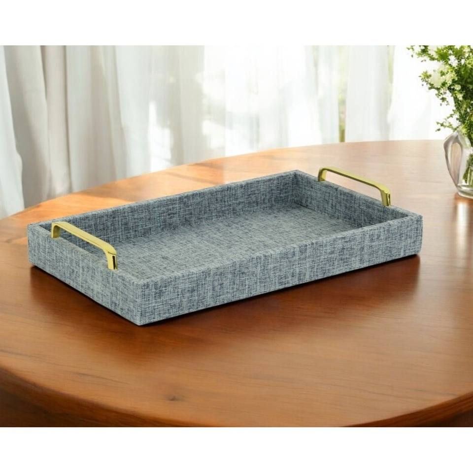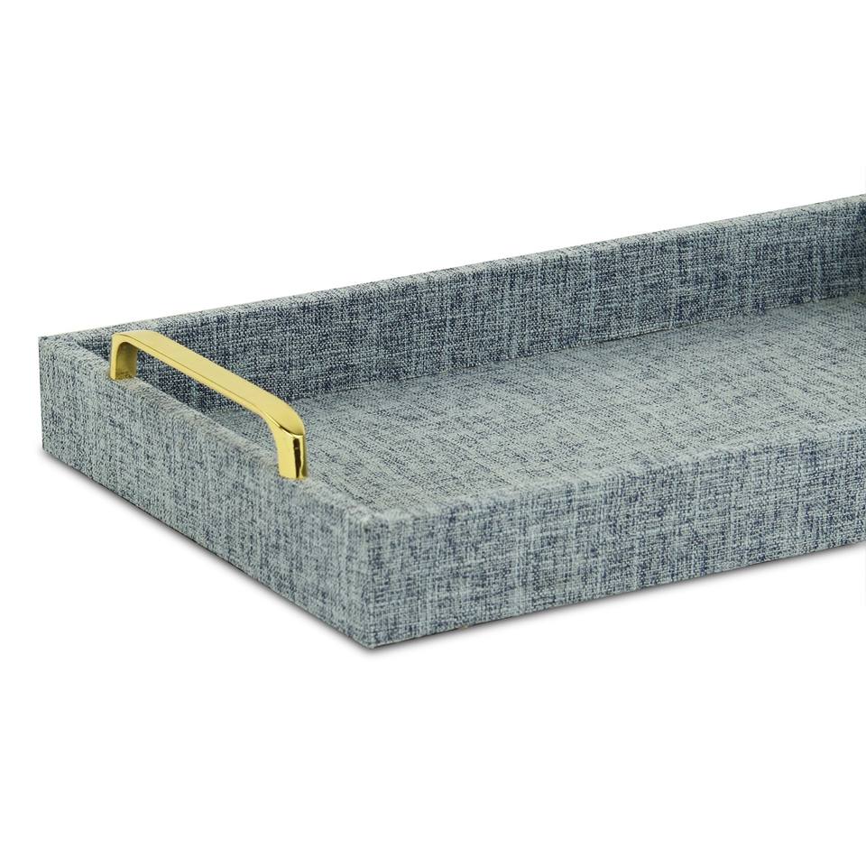 HMS 16\" Light Blue Linen Handmade Wooden Serving Tray Handles Decorative Breakfast Tray Mother Pearl for Sourcing Decor Pearl
