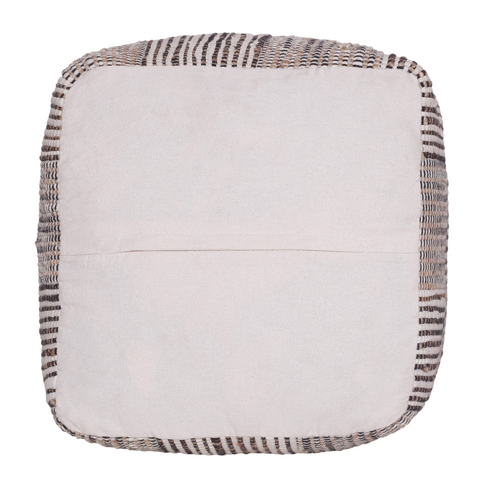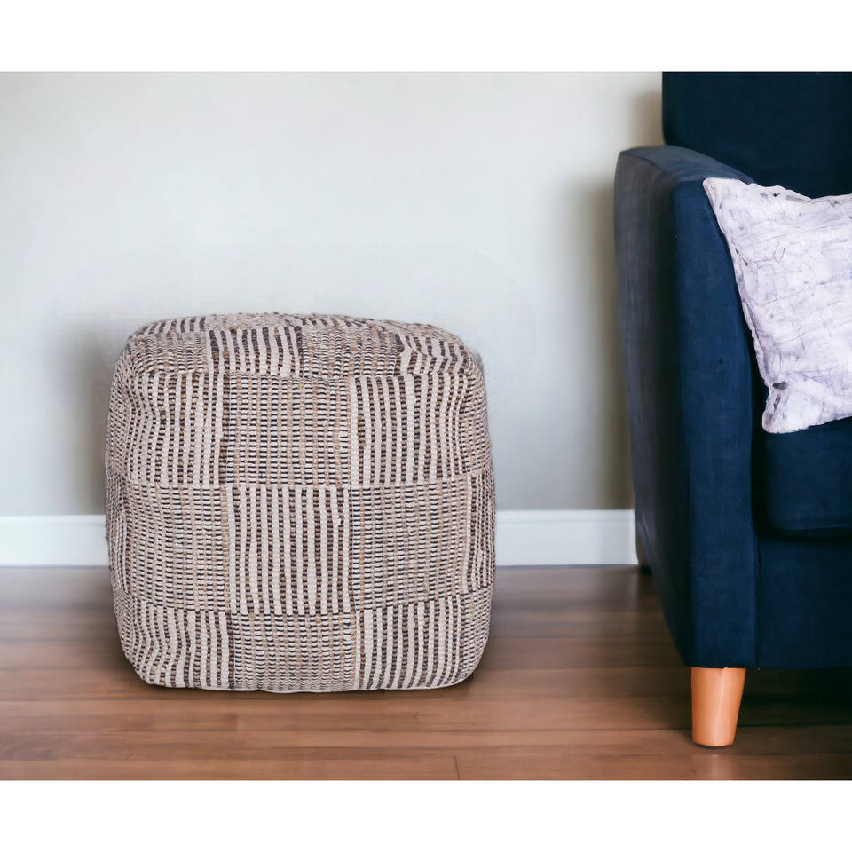HMS 18\" Antique Industrial Brown Cotton Cube Geometric Pouf Ottoman Tufted Leather Stool for Seating Bedroom Living Room Wooden