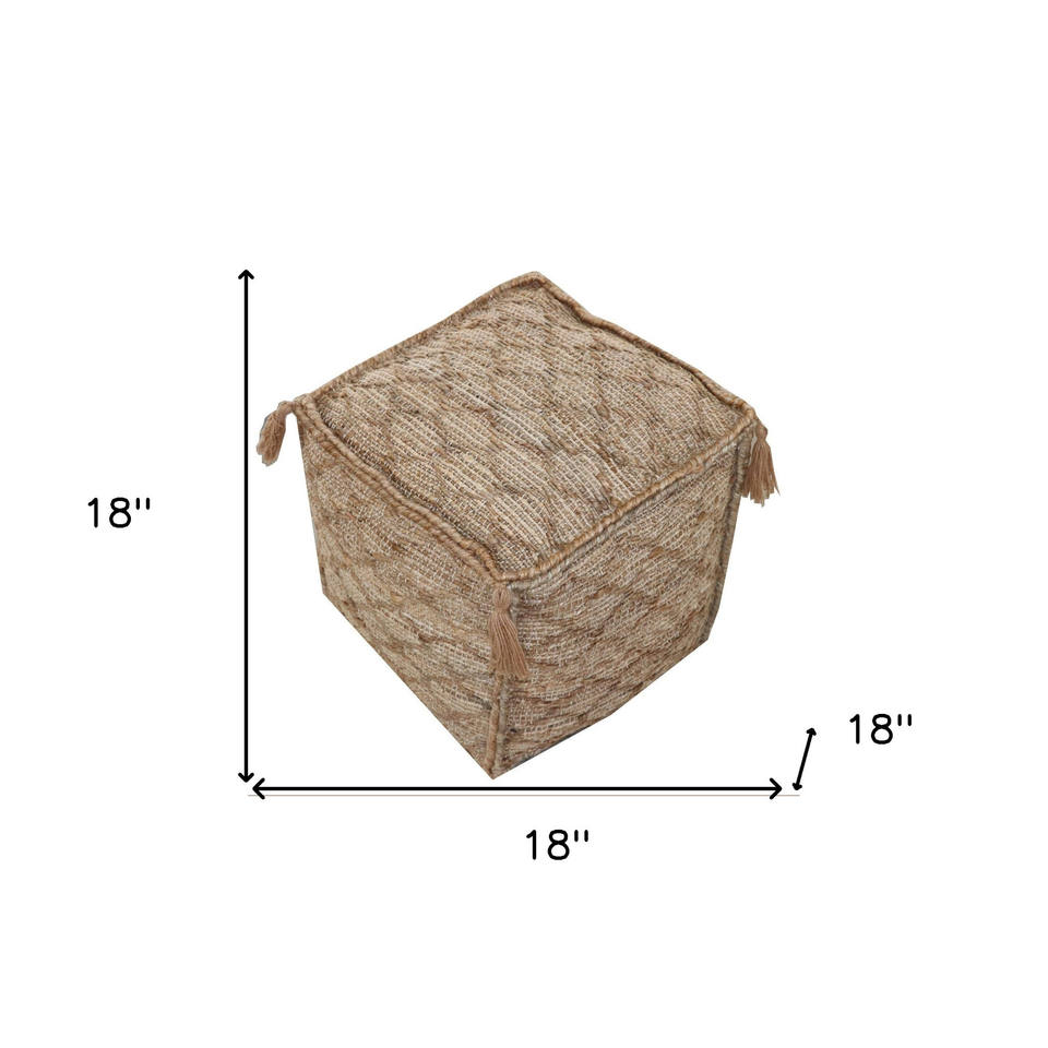 HMS 18\" Brown Jute Cube Trellis Pouf Ottoman Rattan Foot Stool Storage Tufted Foldable for Indoor Outdoor Bedroom Babies/Kids