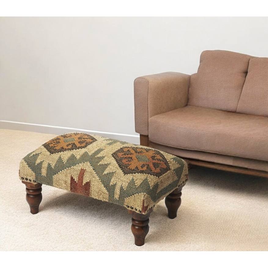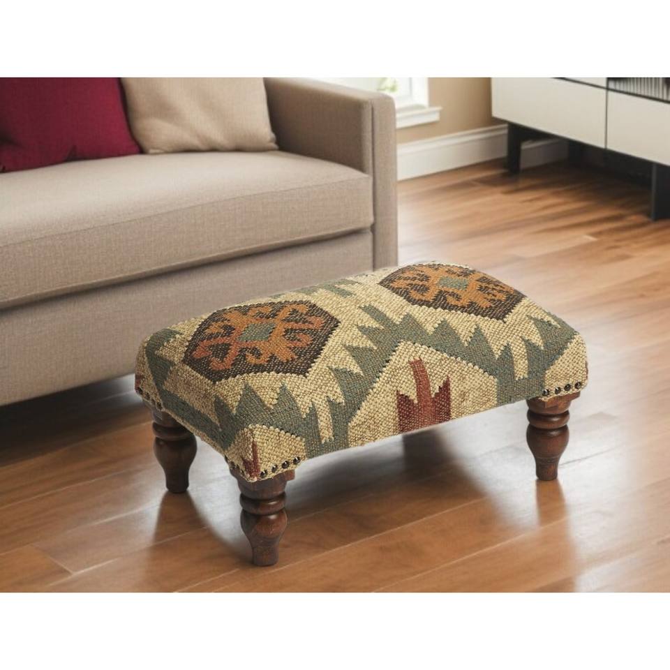 HMS 20\" Beige Brown and Green Jute Wool Southwestern Footstool Stools & Ottomans Product