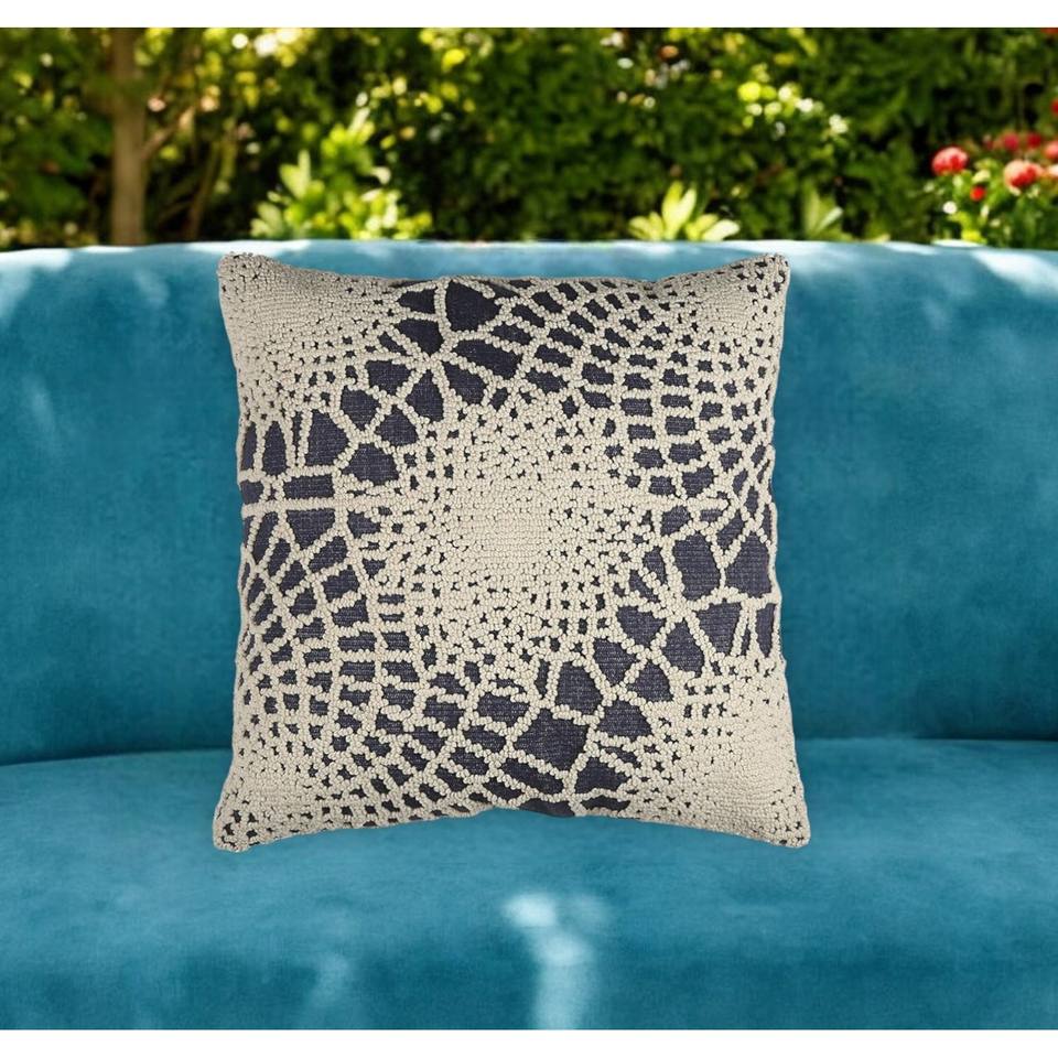 HMS 20\" Blue and Ivory Hand Woven Abstract Indoor/Outdoor Throw Pillow Cover with Texture