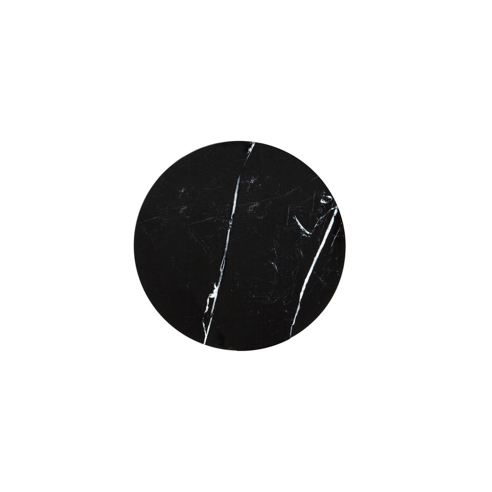 HMS 20\" Silver and Black Faux Marble and Glass Round Mirrored End Table for Living Room Furniture