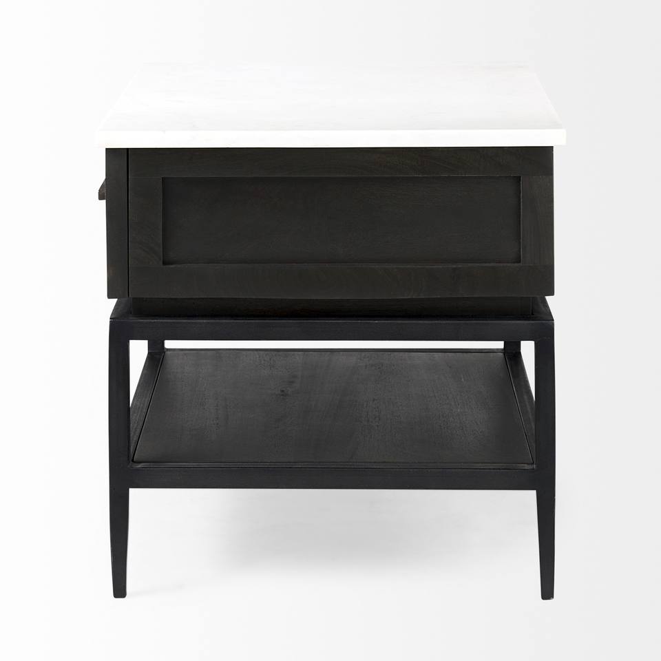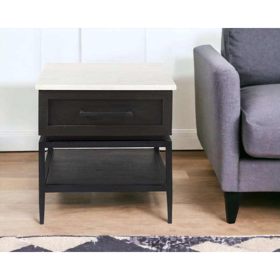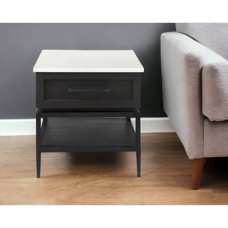 HMS 22\" Black and White Marble Square End Table for Living Room Featuring Drawer and Shelf