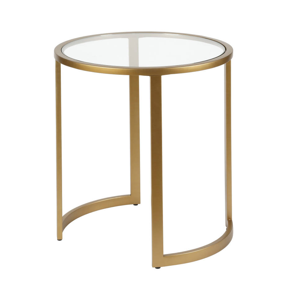 HMS 22\" Round End Table in Brass Clear Glass Steel Elegant Coffee Tables