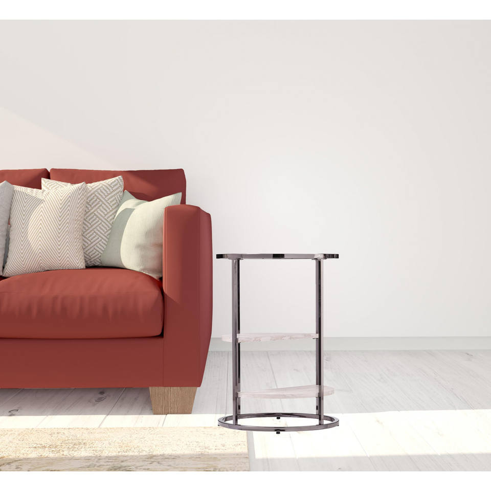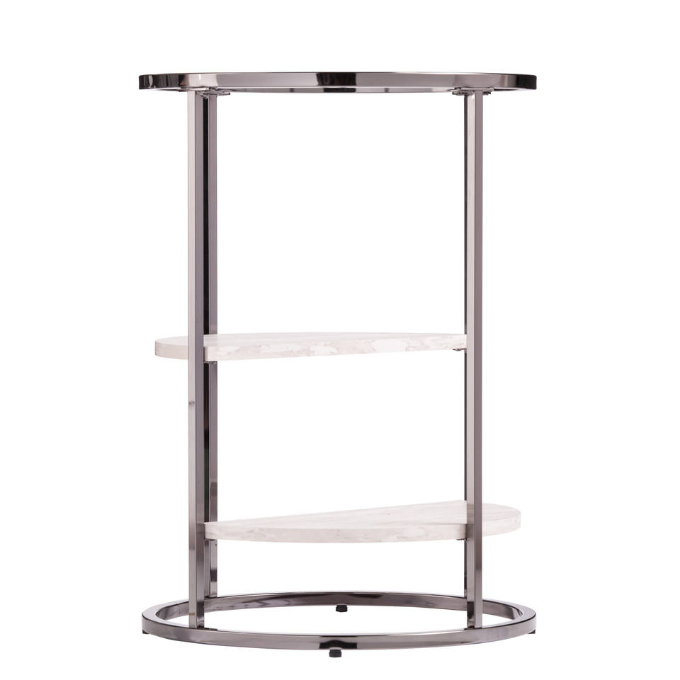 HMS 24\" Black Metal Glass and Faux Marble Round End Table with Two Shelves for Living Room Furniture