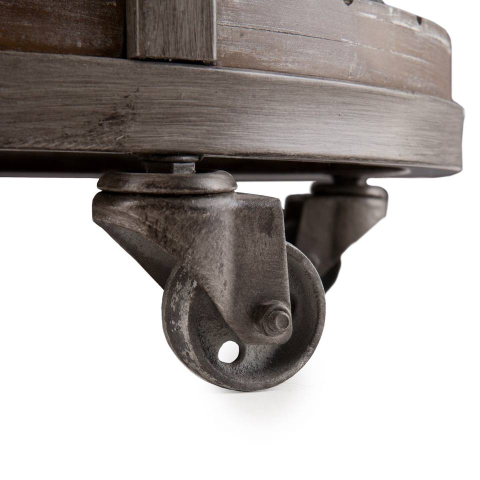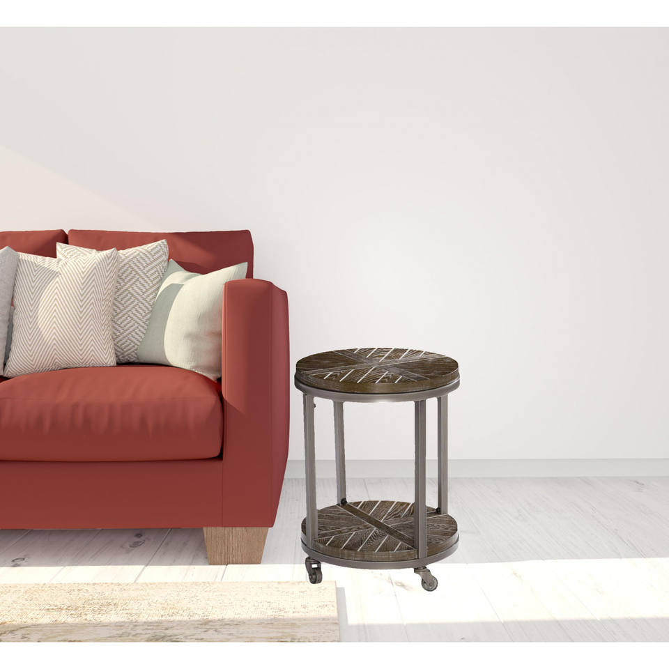 HMS 24\" Brown Manufactured Wood and Iron Round Coffee Table with Shelf Elegant End Table