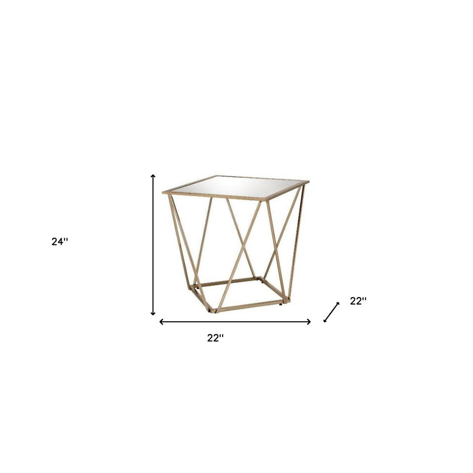 HMS 24\" Champagne Silver Glass and Metal Square Mirrored End Table for Living Room Furniture