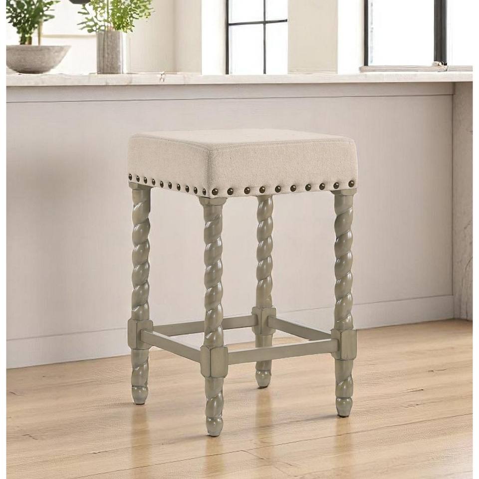 HMS 24\" Cream and Gray Solid Wood Backless Counter Height Bar Chair Stools & Ottomans