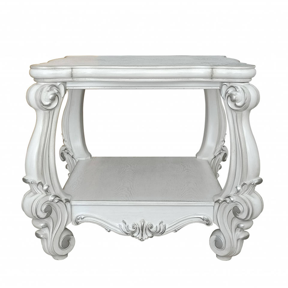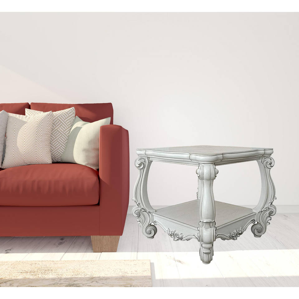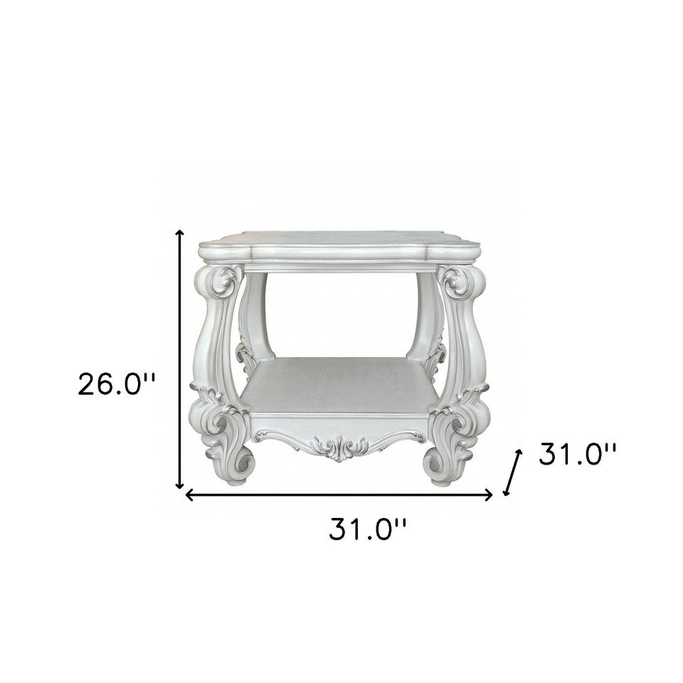 HMS 26\" Antiqued White Manufactured Wood Square Scroll End Table with Shelf for Living Room Furniture