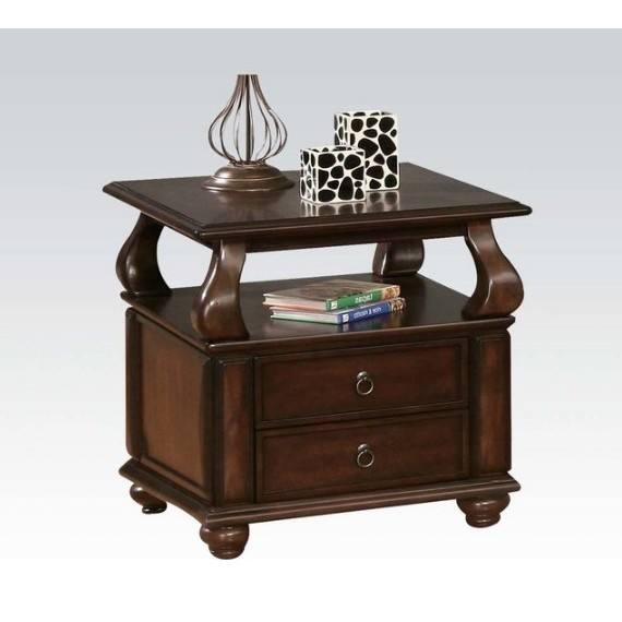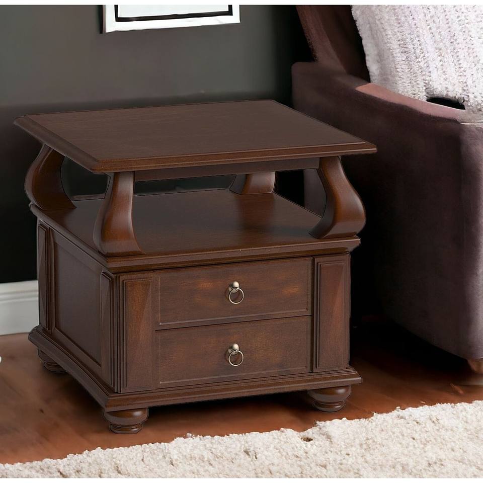 HMS 26\" Brown Solid Wood Square End Table with Two Drawers and Shelf for Living Room Furniture