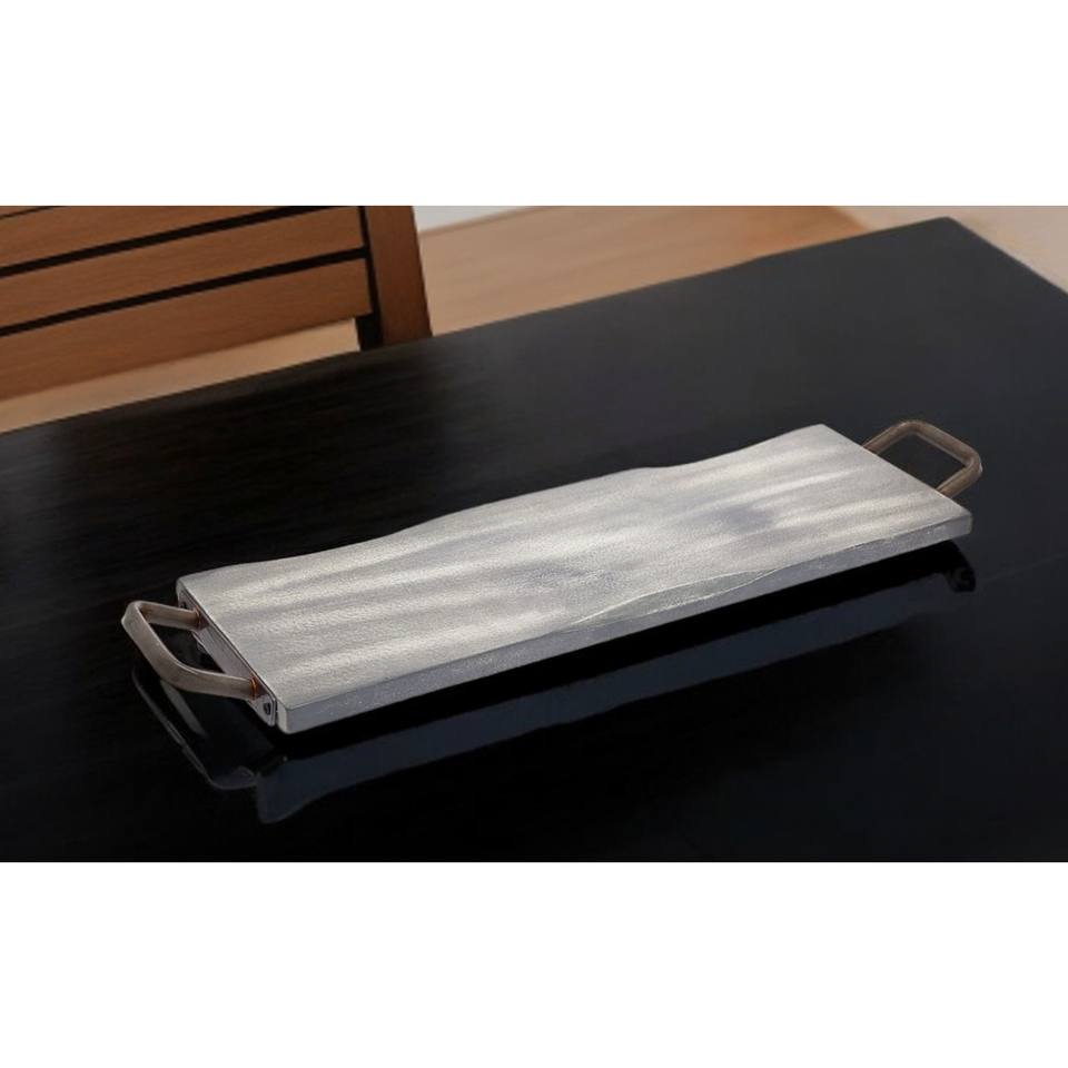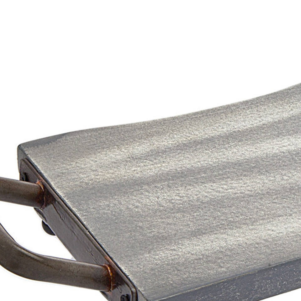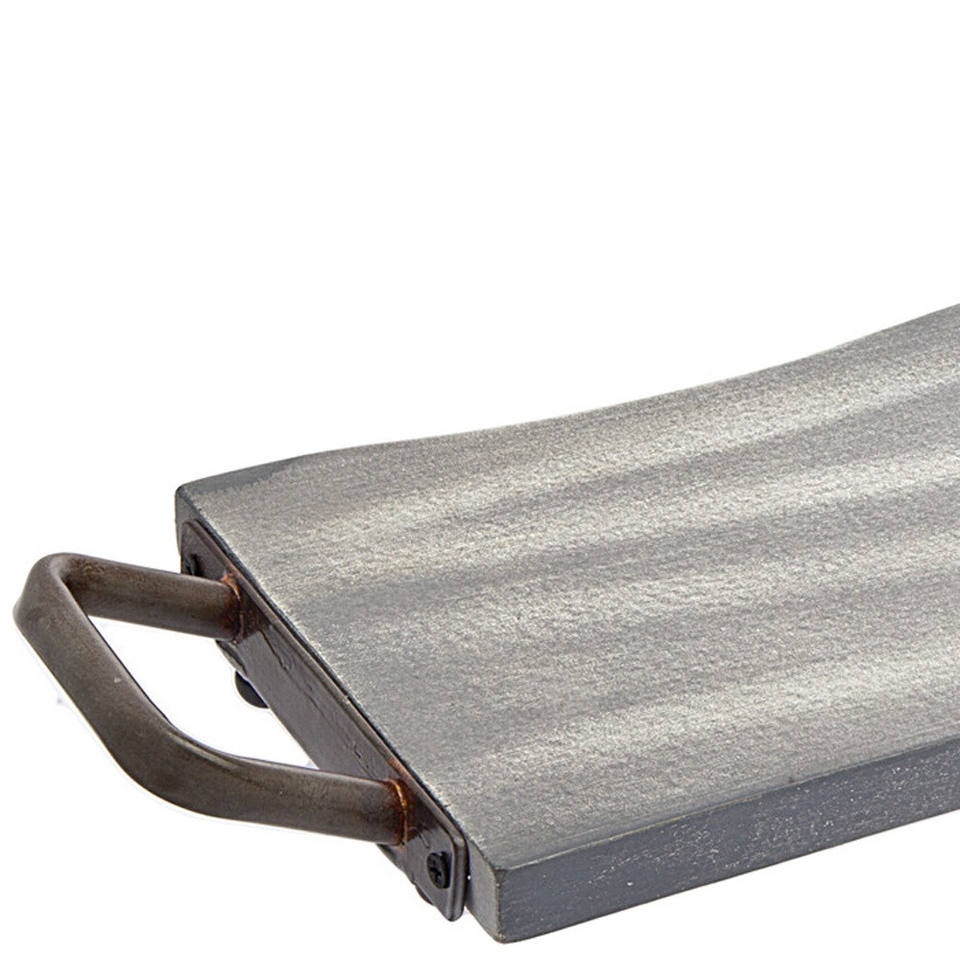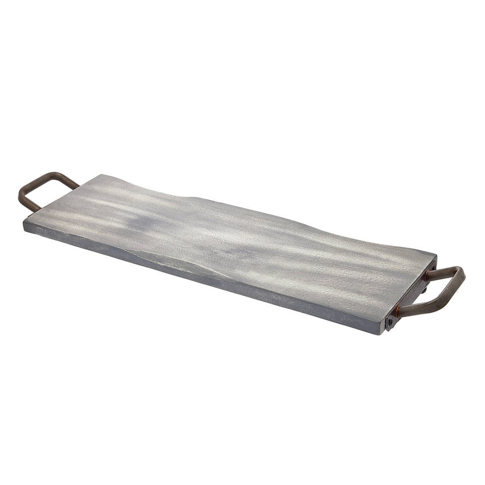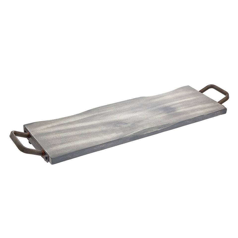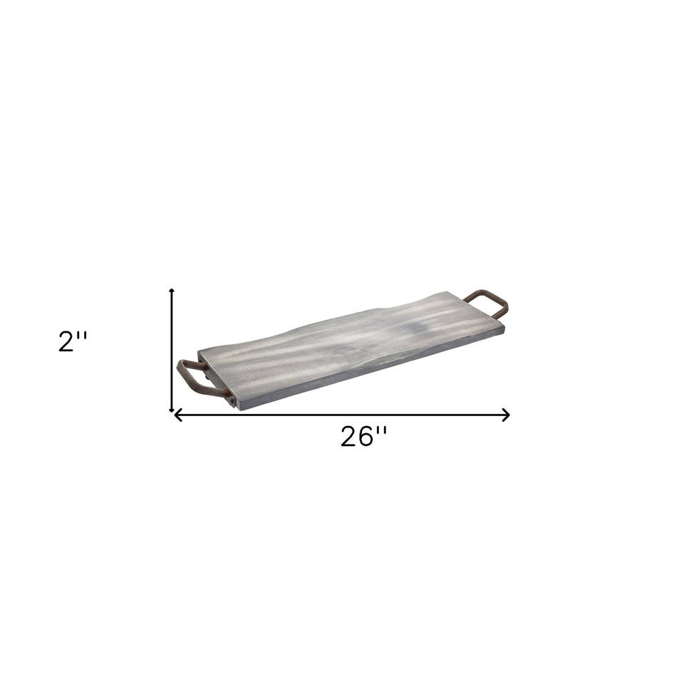 HMS 27\" Large Antique-style Gray and Black Acacia Wood and Metal Serving Tray with Handles Decorative for Food Serving