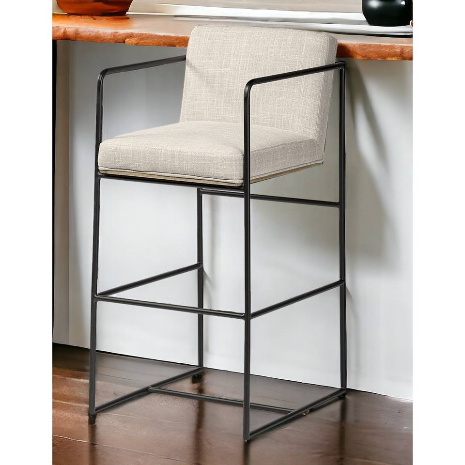 HMS 29 High Counter Height Bar Chair Beige Black Fabric with Metal Solid Wood Iron for Home Bar Kitchen Hotel Dining Cafe Use