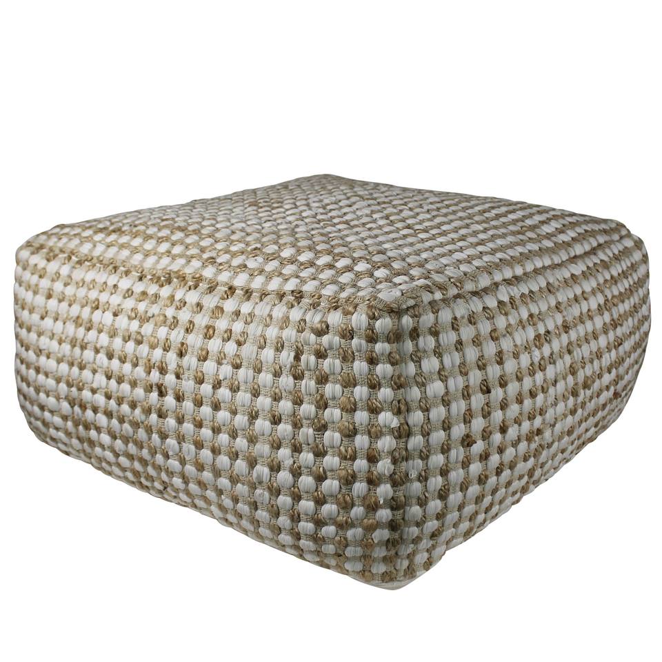 HMS 30\" Natural Cotton Tufted Pouf Ottoman Square Footstool for Entry Bedroom Babies/Kids Warehouse Bench for Various