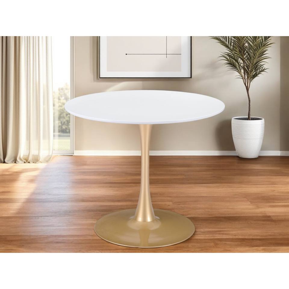 HMS 35 White and Gold Dining Table with Rounded Steel Pedestal Base