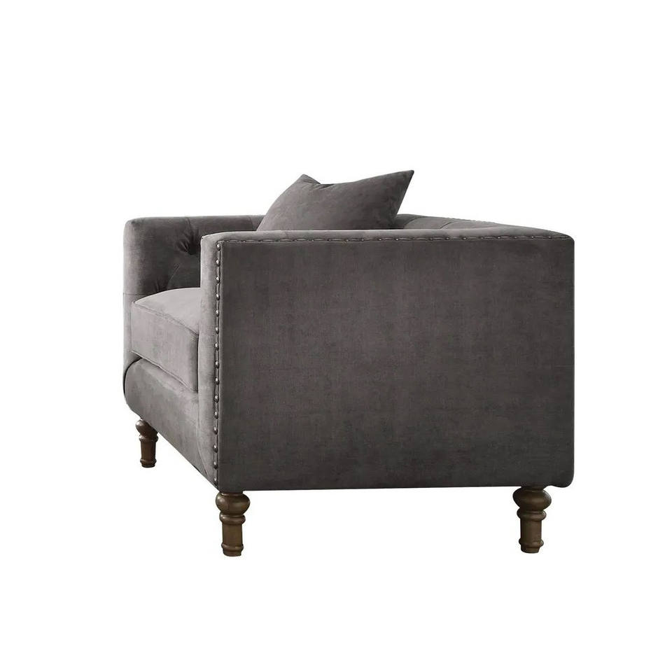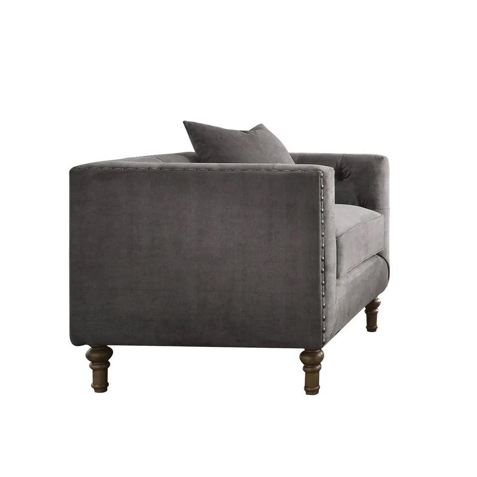 HMS 41 Gray Antiqued Brass Velvet Tufted Arm Chair Toss Pillow Luxury French Home Office Furniture Comfortable for Home Bar Use