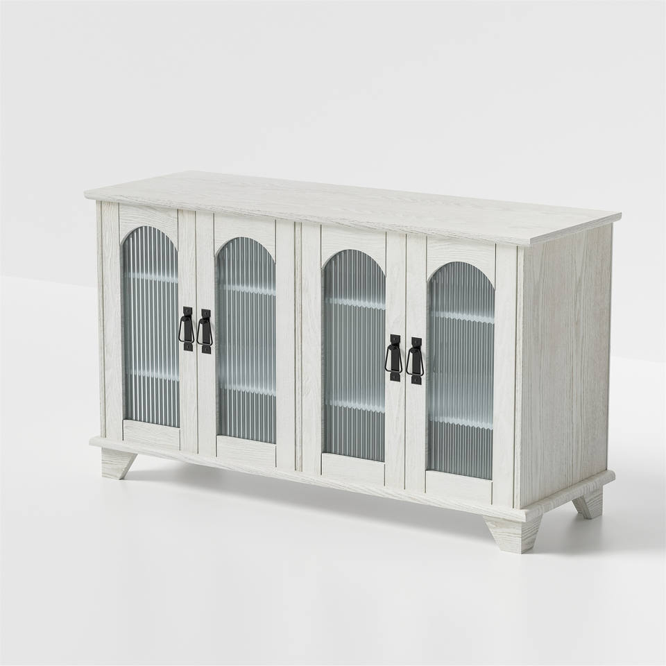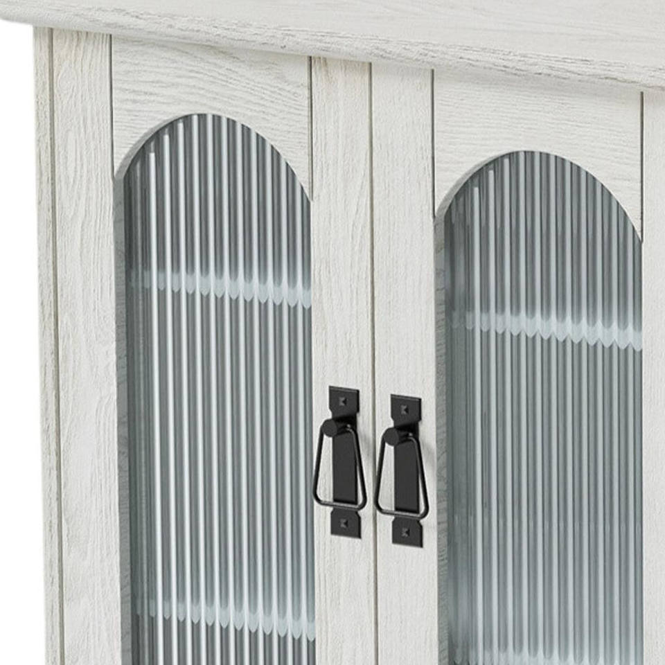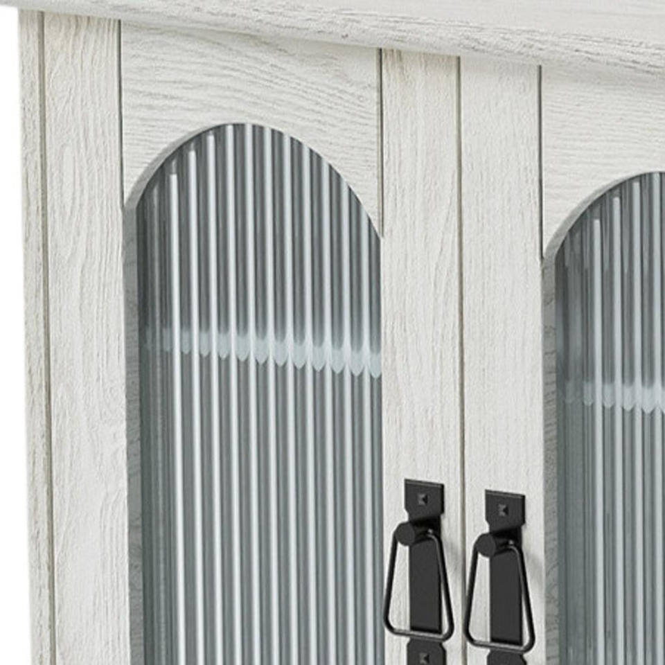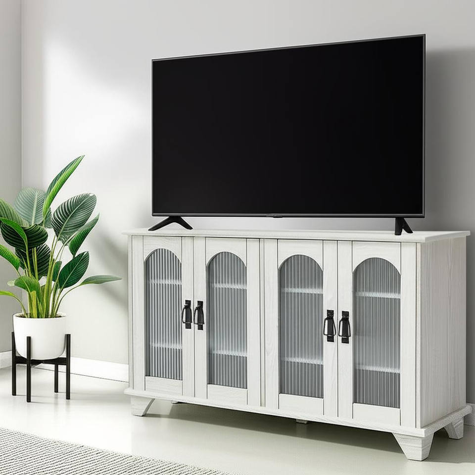 HMS 45\" White Ribbed Textured Glass and Wood Enclosed TV Stand Elegant Contemporary Design for Home Theater Storage