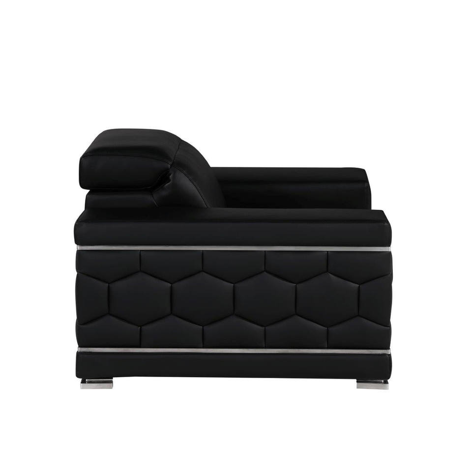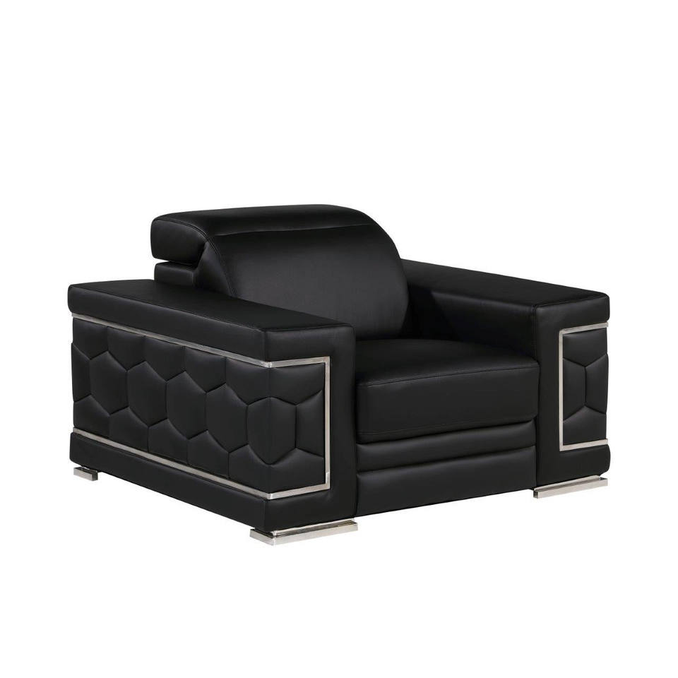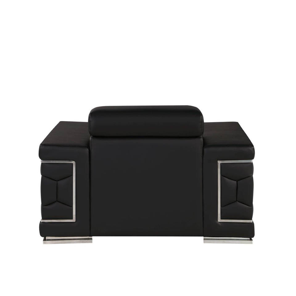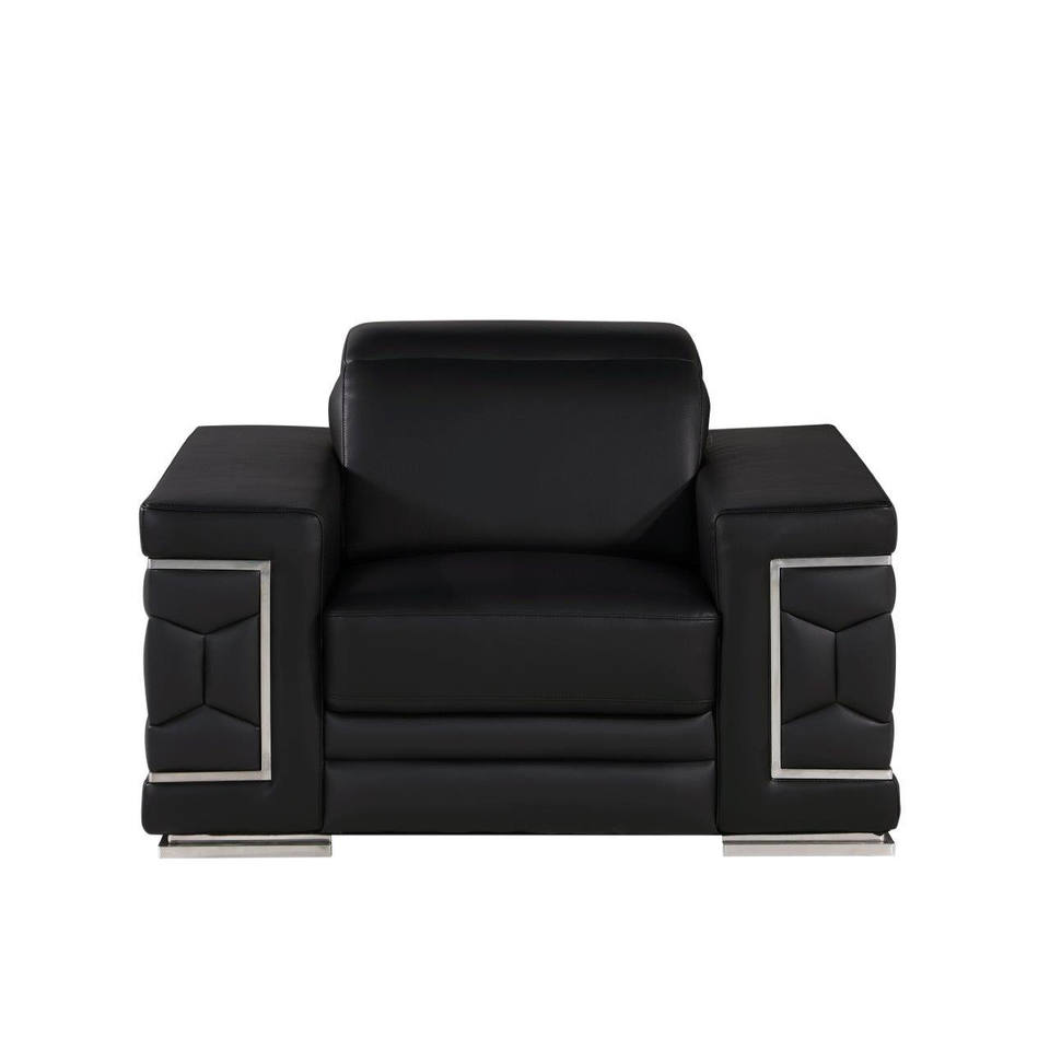 HMS 47\" Black Silver Genuine Leather Club Chair Midcentury Modern Design Reclining Accent Sofa for Home Living Room Oak