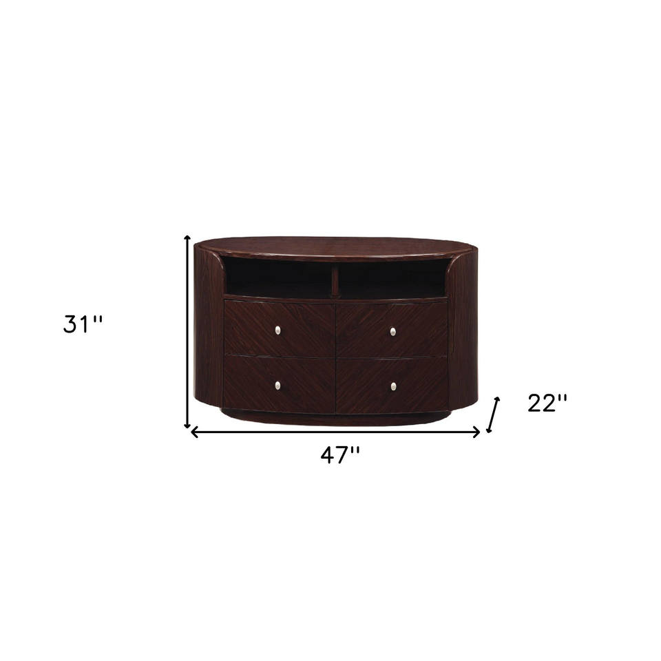 HMS 47\" Luxury Modern Minimalist Dark Brown Wooden TV Stand Enclosed Cabinet Storage Living Room House Panel Console/TV Table