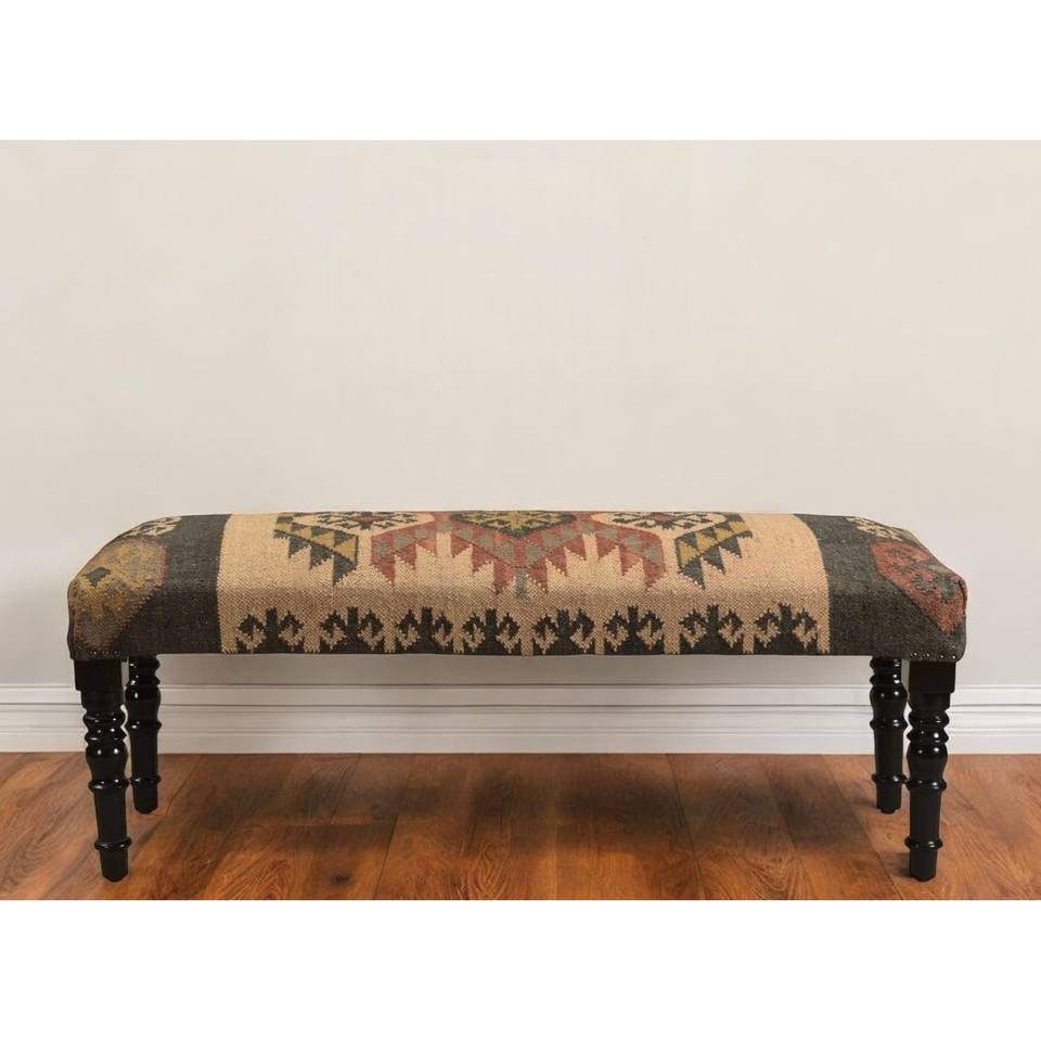 HMS 47\" Southwest Upholstered Bench in Shades of Brown and Black Leg for Living Room Furniture