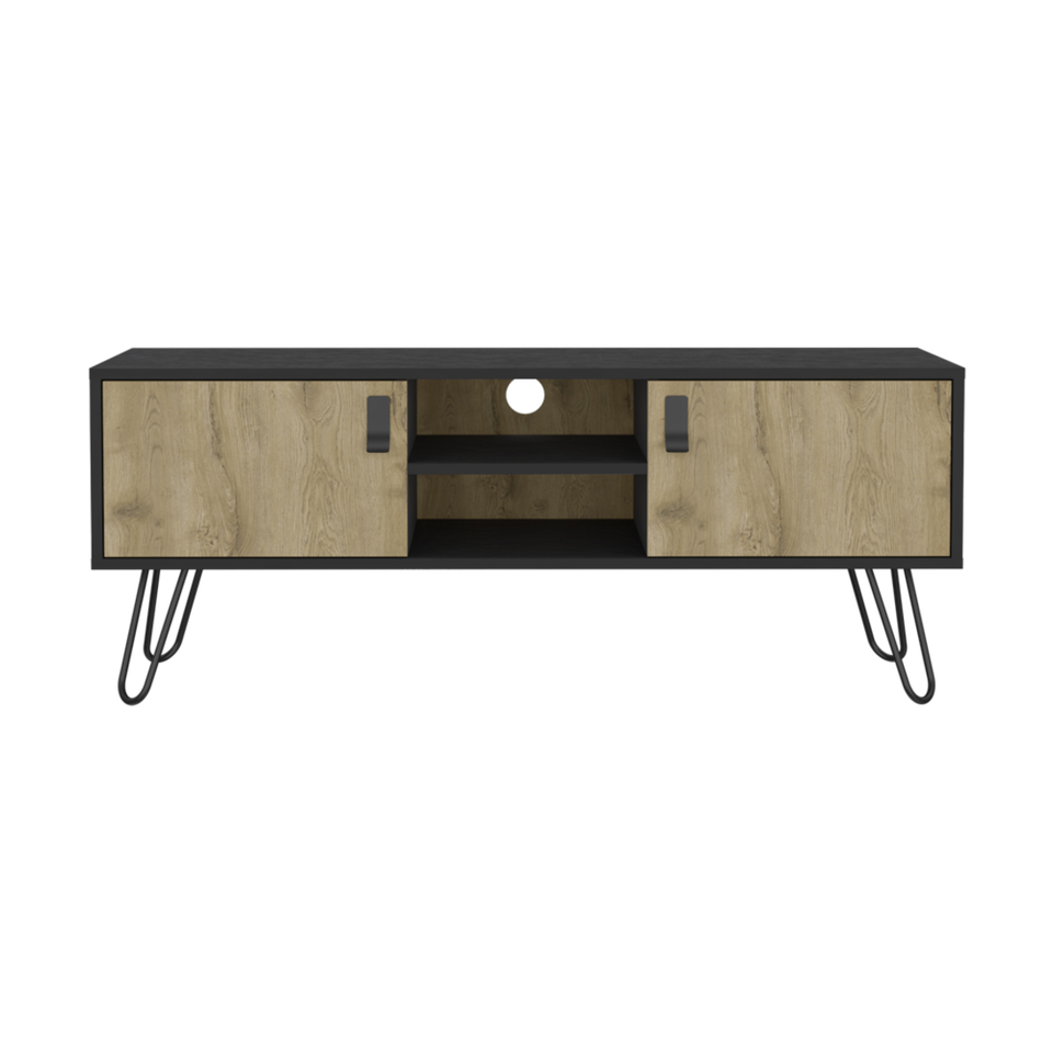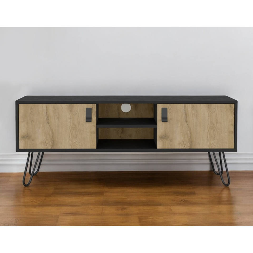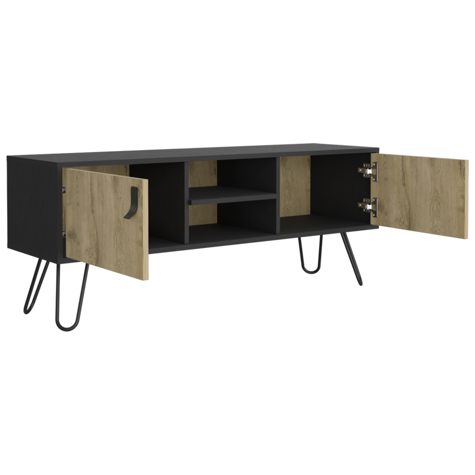 HMS 48\" Beige and Black TV Stand with Open and Enclosed Storage Cabinets