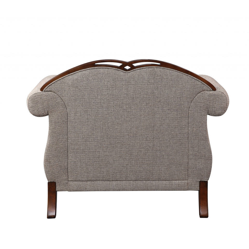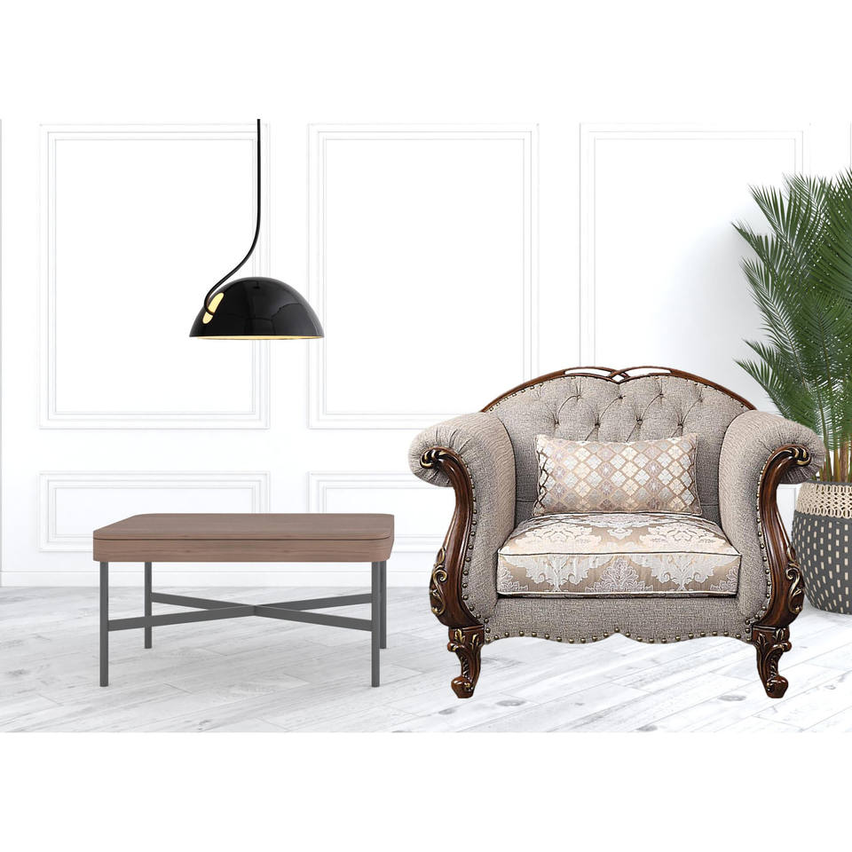 HMS 48\" Beige and Brown Floral Arm Chair Fabric Living Room Chair