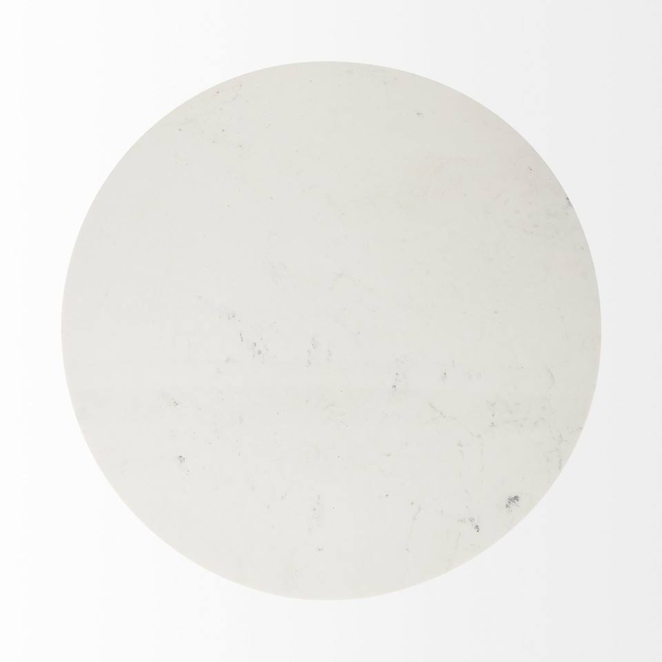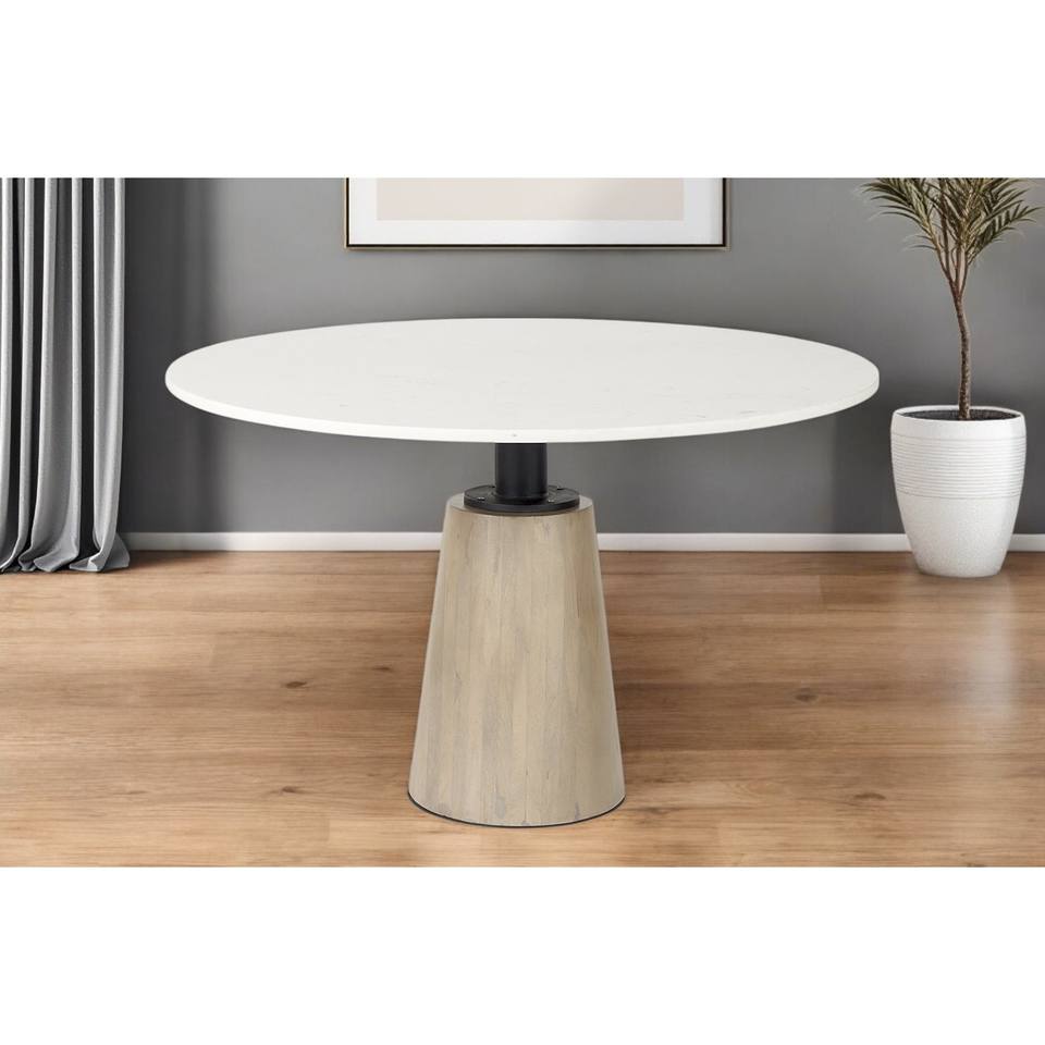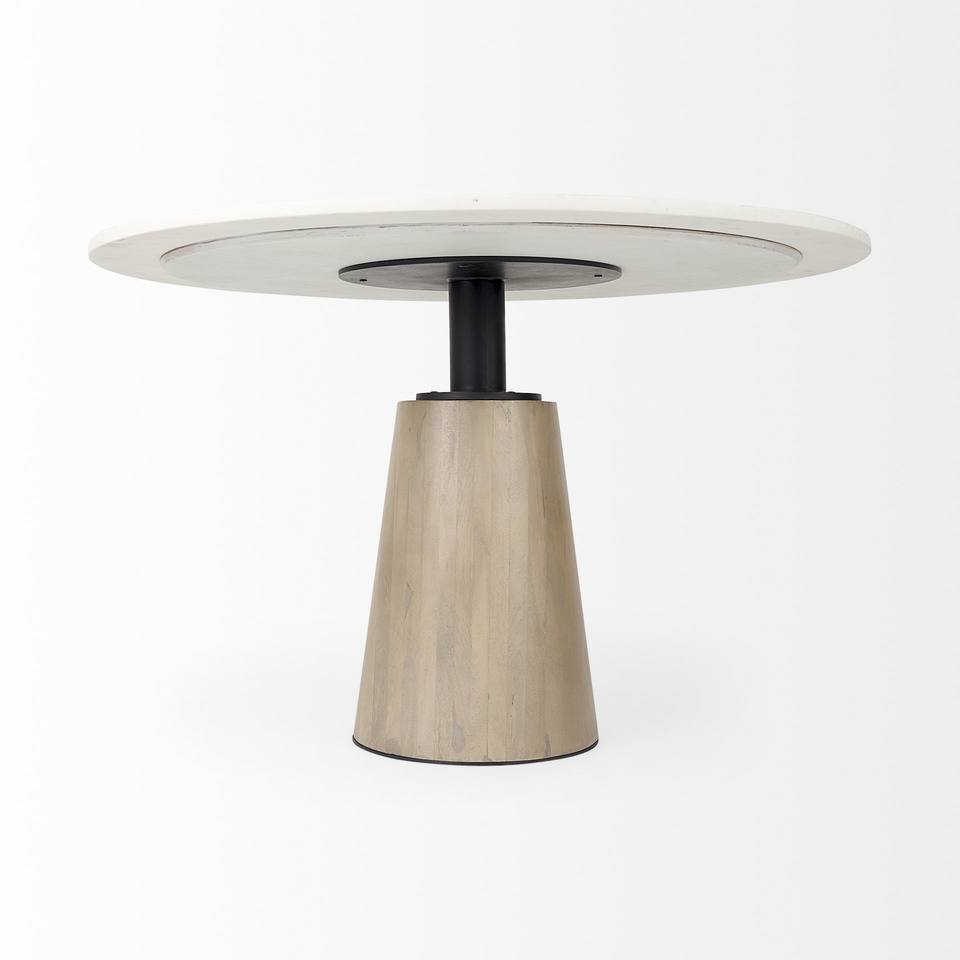 HMS 48\" White and Natural Rounded Marble Pedestal Base Dining Table