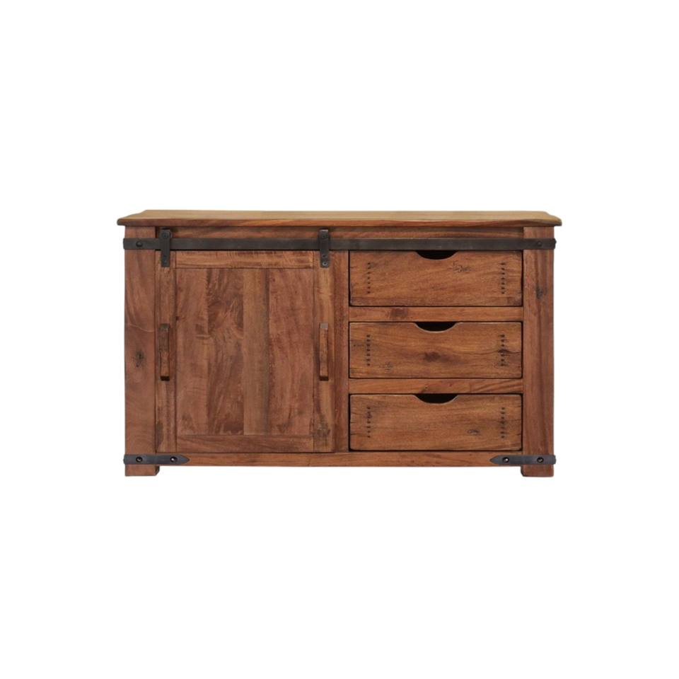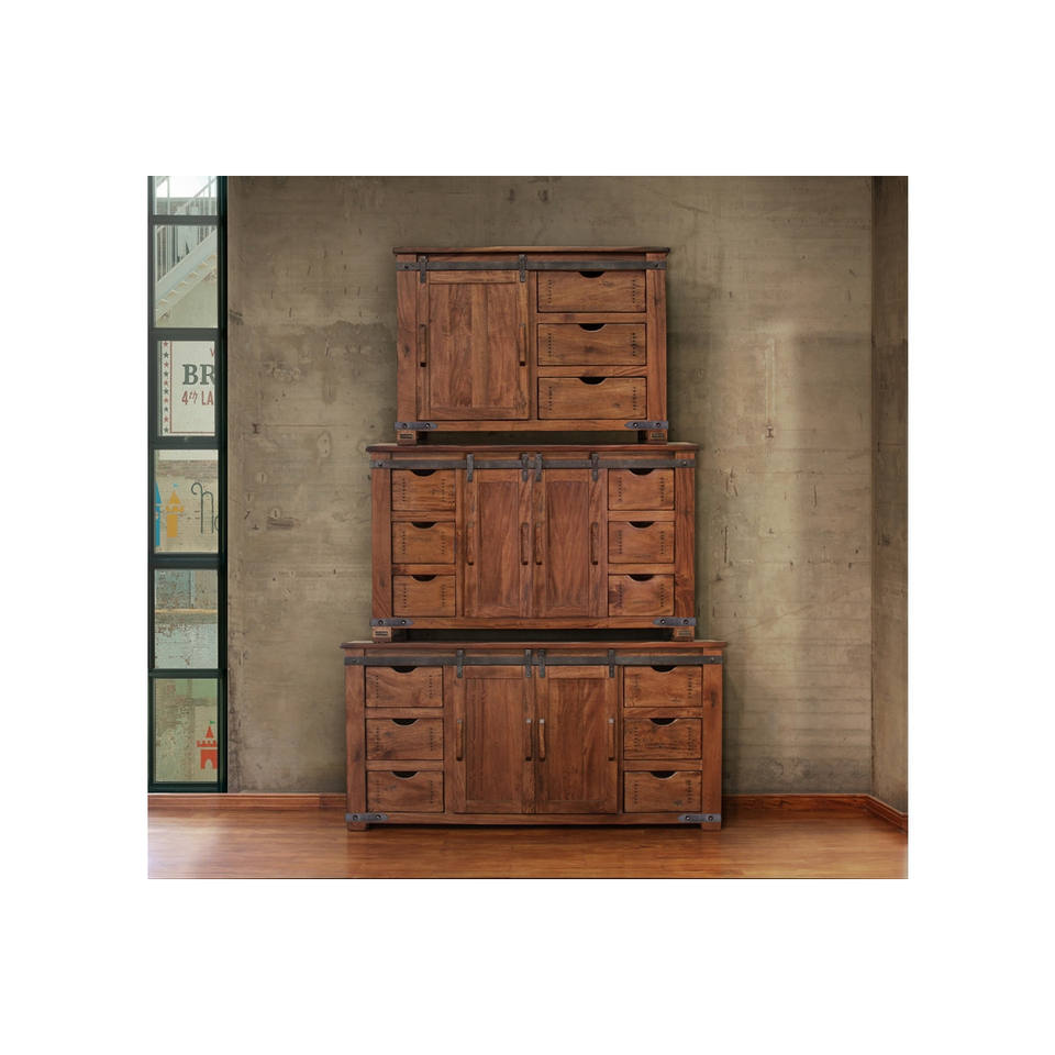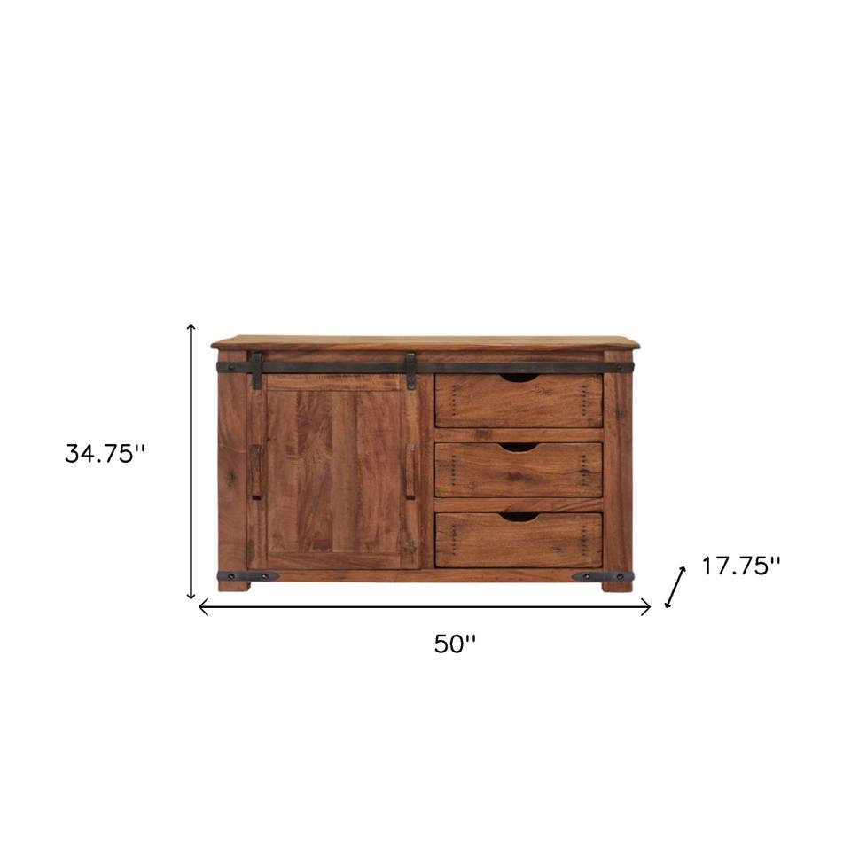 HMS 50 Brown Solid Wood Distressed TV Stand with Enclosed Storage Unique Vintage Style